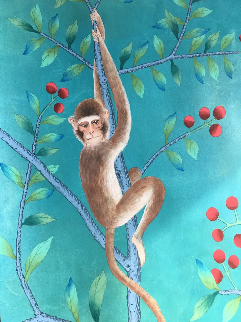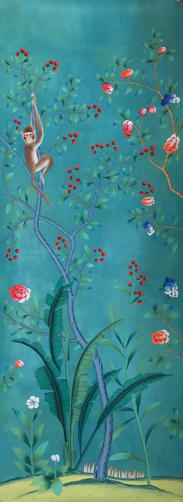 Palm Tree Chinoiserie Hand Painted Wallpaper On Edo Xuan Paper 36"w X 108" Panel