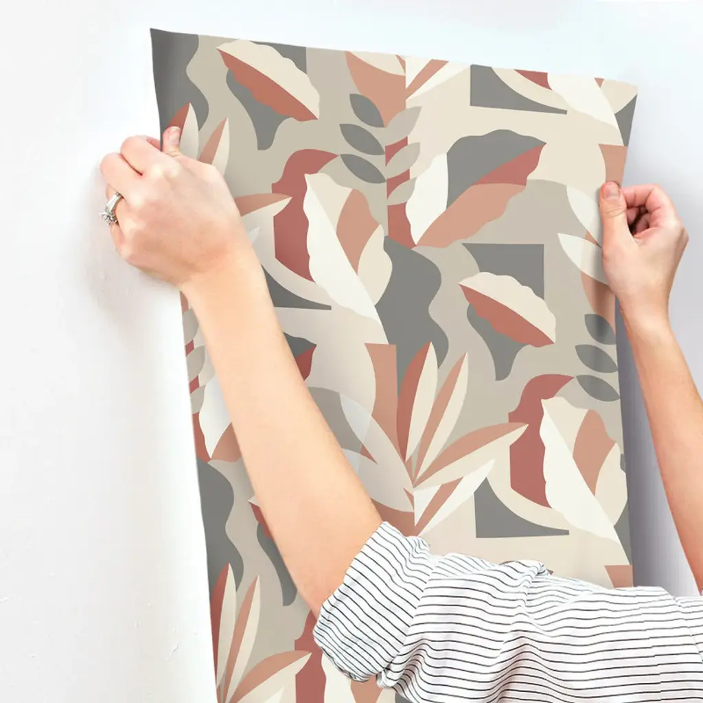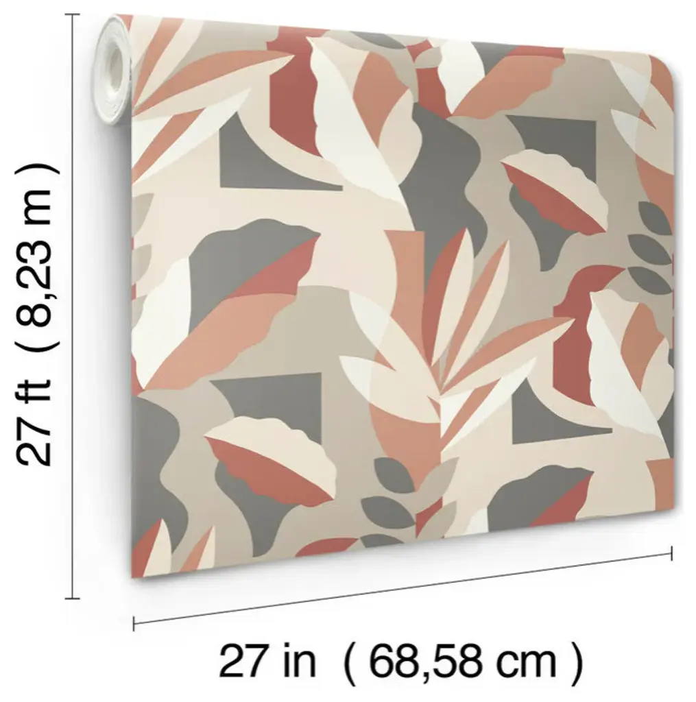 Tropical flora has been reduced and reimagined as a series of striking color blocked forms in Papier Colle, the leaves inked in shades of red, coral, grey, creamy beige and white. This Papier Colle Wallpaper measures approximately 27 inches wide by 27 feet long, measuring approximately 60.8 square feet per roll. Artistic experimentation with the interplay of form, color and texture has led to an avant-garde reimagining of familiar design motifs. Unpasted non woven material; 25.25-in repeat, straight match; Washable and strippable; 27-in by 27-ft long roll; Covers about 60.8 square feet