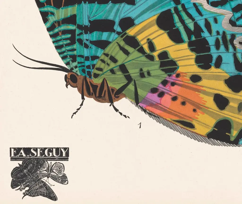 We are thrilled to present the exquisite Séguy Butterfly #07, available exclusively on Chairish, in the standard 14x18-inch size from CFA Editions. This offer features a beautifully crafted giclée reproduction, printed at ultra-high resolution on premium, acid-free, textured cotton rag paper imported from the renowned St. Cuthberts Mill in Wells, located in the southwest of England. With a legacy of papermaking dating back to the 1700s, St. Cuthberts Mill is celebrated for its exceptional craftsmanship. Printed using archival inks with a lightfastness rating of 200 years, this artwork guarantees vibrant, lasting colors, making it the finest reproduction available. Each print is designed to capture the essence of an original antique, complete with the character and charm of aged details. From the darkened edges that evoke years of handling and study to the subtle specks and imperfections of the original, this reproduction preserves the timeless beauty of its historic inspiration. The artist behind this masterpiece, Émile-Allain Séguy, was a French designer and artist celebrated for his groundbreaking contributions to the decorative arts and pattern design during the Art Deco period. Born on September 22, 1877, in Paris, France, and active until his passing in 1937, Séguy was a pioneer in blending natural motifs with geometric patterns and bold, vibrant colors. Séguy’s most iconic work, Papillons (Butterflies), is a stunning series of illustrations that meticulously depict butterfly species in symmetrical, visually captivating compositions. His extraordinary ability to capture the essence of nature in intricate patterns and rich palettes solidified his reputation as a master of Art Deco design. Over his prolific career, Séguy applied his talents to wallpapers, textiles, book covers, and decorative arts, often inspired by the flora and fauna that defined his unique artistic vision. Séguy’s legacy continues to influence artists and designers, with his work celebrated for its creativity, sophistication, and timeless appeal. Be sure to explore our other listings to discover the complete series of 20 stunning images from Papillons (Butterflies in French).