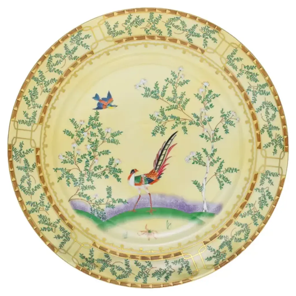 Inspired by a Chinese wallpaper design, Paradis was created from a collaboration between Porcelaines Raynaud and Fromenthal, a well-known British interior design firm. An exquisite addition to Raynaud's exotic collections. Raynaud was established in 1849 and is the only survivor of 11 porcelain factories existing in Limoges, France. After years of research, Raynaud discovered techniques to create infinite combinations of fade-resistant decorations that is still used by porcelain makers. Boasting a client list of numerous presidents to Princess Diana, Raynaud has been the synonym of quality, known and recognized on every continent.
