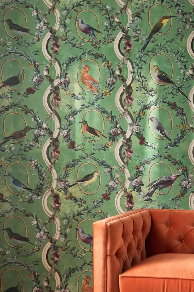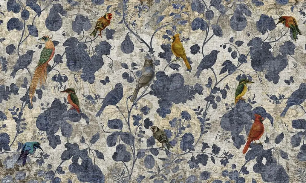 Paradise Birds Wall Paper In Fabric Also Suitable For Wet Area