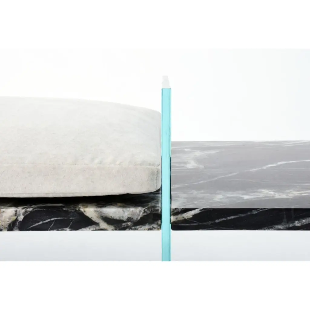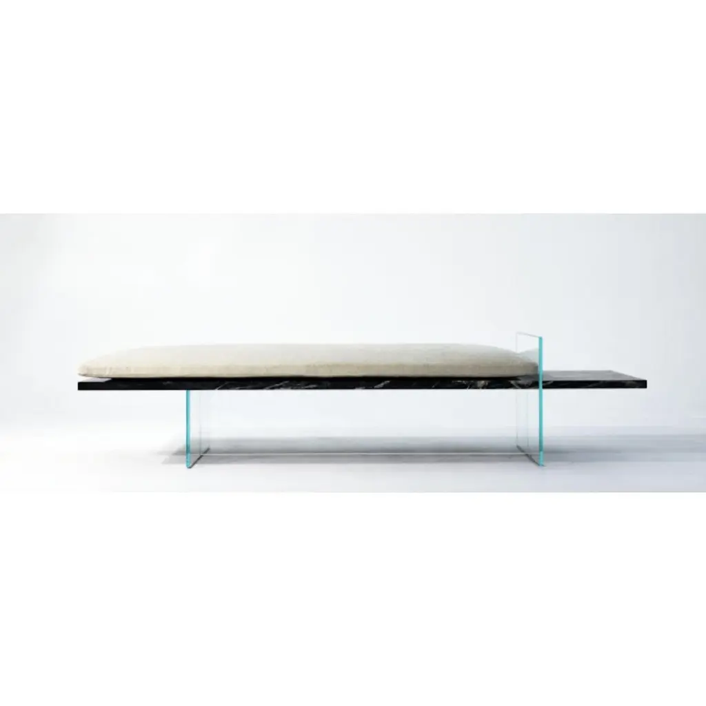 Paradise lost daybed by ClasteDimensions: D 61 x W 198.1 x H 45.7 cm.Material: glass, marble.Weight: 159 kgAlso available in different and materials: Carrara Gioia, Belvedere Black, Mont Blanc, Manhatten Calacatta, Fusion Marble, Temptation Marble, Blue Mare. Please contact us. Price is without the cushion. Since 2017 Quinlan Osborne has cultivated an aesthetic in his work that is rooted in the passion for contemporary design he developed while practicing as an Architect for fi fteen years prior to shifting his attention to the world of collectible design and furniture. Representative of a new form of minimalism his studio produces a refi ned, sensual series of works which provide subtle moments of refl ection, devoid of distraction yet monumental and bold. The sculptural nature of his work explores new ways and means of infusing traditional materials such as marble and glass with notions of fragility and tension that elicit a deeper more emotional connection resulting in pieces that appear impossibly stable yet permanently grounded. Through ingenuity and artistry his work fuses an in-depth knowledge of tradition- al techniques of craftsmanship and artisanry with a desire to push the boundaries of what is possible with modern technology and fabrication processes, blending the familiar with the extraordinary and inviting people to re-examine their expectations of what furniture should be and how it is traditionally used.His work has been recognized with numerous high-profi le international design awards, including the Archiproducts Design Award, the Good Design Award from the Chicago Athenaeum: Museum of Art and Design and the Grands Prix du Design for Quebec. He has also been featured in several signifi cant design and lifestyle publications around the world including Elle Décor, T Magazine, Architectural Digest, Wallpaper, Surface Magazine and many others.