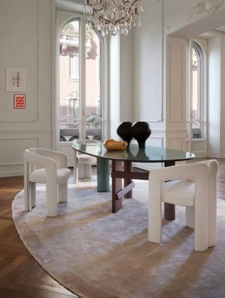 Patricia Urquiola Sengu Table For CassinaA design dining room table inspired by the ritual reconstruction of Japanese shrines, a contemporary piece that celebrates light-hearted cheer through dialog between different materials.Solid wood, marble and ceramic define this piece signed by Patricia Urquiola. Thanks to the layering of materials, its pronounced visual physicality lends the table a sophisticated yet simple monumental feel. The oval and round table is characterised by a solid wood structure with an oval leg which is connected by one or two crosspieces to the two cylindrical legs. The top is in the same wood essence as the structure or combined with a cylindrical column of strong presence available in a selection of marbles and coloured ceramics.STRUCTUREWood structure with an oval leg which is connected by one or two crosspieces to the two cylindrical legs.TOPAvailable in wood, a selection of marbles and colored porcelain stoneware.Possibility to add a Lazy Susan.Sengu Table is an almost monumental piece of furniture that celebrates conviviality through poetic dialogue, placing an accent on the union of different materials that together express great visual tactilityThe oval and round table is characterised by a solid wood structure with an oval leg which is connected by one or two crosspieces to the two cylindrical legs. The top is in the same wood essence as the structure - Canaletto walnut, natural oak or stained black oak - or combined with a cylindrical column of strong presence available in a selection of marbles and coloured ceramics.Important information regarding images of products:Please note that some of the images show other colors and variations of the model, these images are only to present interior design proposals. The item that is selling is on the first image.Important information regarding color(s) of products:Actual colors may vary. This is due to the fact that every computer monitor, laptop, tablet and phone screen has a different capability to display colors and that everyone sees these colors differently. We try to edit our photos to show all of our products as life-like as possible, but please understand the actual color may vary slightly from your monitor.About the Designer:Patricia Urquiola was born in Oviedo (Spain) in 1961. Lives and works in Milan. She attended the University of Architecture at Madrid Polytechnic and Milan Polytechnic, where she graduated in 1989 with Achille Castiglioni. Assistant lecturer to Achille Castiglioni and Eugenio Bettinelli in Milan and Paris, responsible for the new product development office of DePadova, working with Vico Magistretti, head of Lissoni Associati’s design group. In 2001 she opened her own studio working on product design, architecture, and installations. Amongst her last projects of architecture. The museum of Jewel in Vicenza, Mandarin Oriental Hotel in Barcelona, das Stue Hotel in Berlin and the Spa of Four Seasons Hotel in Milan; showroom and installations for Gianvito Rossi, BMW, Cassina, Missoni, Moroso, Molteni, Officine Panerai, H&M, Santoni and the general concept of Pitti Immagine Firenze. She realize design products for the most important Italian and international companies, such as : Agape, Alessi, Axor-Hansgrohe, B&B Italia, Baccarat, Boffi, Budri, De Padova, Driade, Ferragamo, Flos, Gan, Georg Jensen, Glas Italia, Haworth, Kartell, Kettal, Kvadrat, Listone Giordano, Louis Vuitton, Molteni, Moroso, Mutina, Rosenthal and Verywood.Some of her products are exposed in various Museums and collections, such as MoMA in New York, Les arts decoratifs in Paris, the Museum of Design in Zurich, Vitra Design Museum in Basel, Victorian&Albert Museum in London, Stedelijk in Amsterdam and Triennale Museum in Milan.She has won several international prices and awards. Amongst others the Medalla de Oro al Mérito en las Bellas Artes (Gold Medal of fine arts) awarded by the Spanish Government; Order of Isabella the Catholic, awarded by His Majesty The King of Spain Juan Carlos I; “Designer of the decade” for two German magazines, Home and Häuser, “Designer of the Year” for Wallpaper, Ad Spain, Elle Decor International and Architektur und Wohnen Magazine. She is Ambassador of Expo Milano 2015. September 2015 Patricia Urquiola nominated Art Director of Cassina.About Manufacture:Established in 1927 by Cesare and Umberto Cassina in Meda, Italy, Cassina launched industrial design in Italy in the 1950s, based on a totally innovative approach that marked the transition from artisan production to mass production. With a mindset focused on research and innovation, Cassina combines technology and long-standing artisan craftsmanship. Memory, research, innovation. Cassina blends traditional skills and superior productivity, meticulous attention to detail and passion, uniqueness and experimentation, wellbeing and sustainability. Today, the company continues to address new lifestyles with the creation of complete, harmonious interior decor solutions that embody the best contemporary design for all areas of the home.