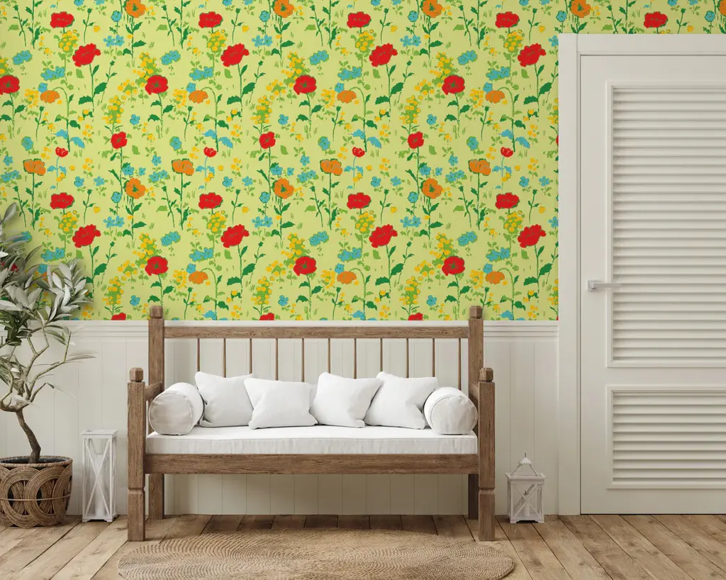 Let your walls do the talking with this playful pattern from iconic artist Paule Marrot. Featuring an array of cheerful Poppies, this colorful wallpaper will add a dash of whimsy to any room!