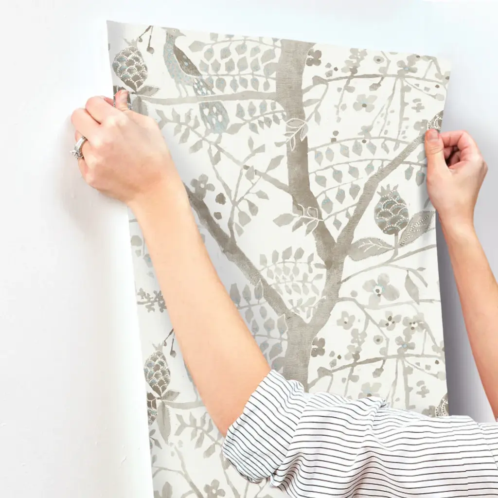 Pattern Peacock Block Print is an abstract bird and branch motif with a textured background inspired by woven linen. This Peacock Block Print Wallpaper measures approximately 27 inches wide by 27 feet long, covering About 60.8 square feet per roll. Durable and easy to remove from primed walls, this friendly to hang unpasted nonwoven wallpaper is created with a special blend of synthetic fibers, making it both easy to hang and tear resistant. Unpasted non woven material; 24-in repeat, straight match; Washable and strippable; 27-in by 27-ft long roll; Covers about 60.8 square feet