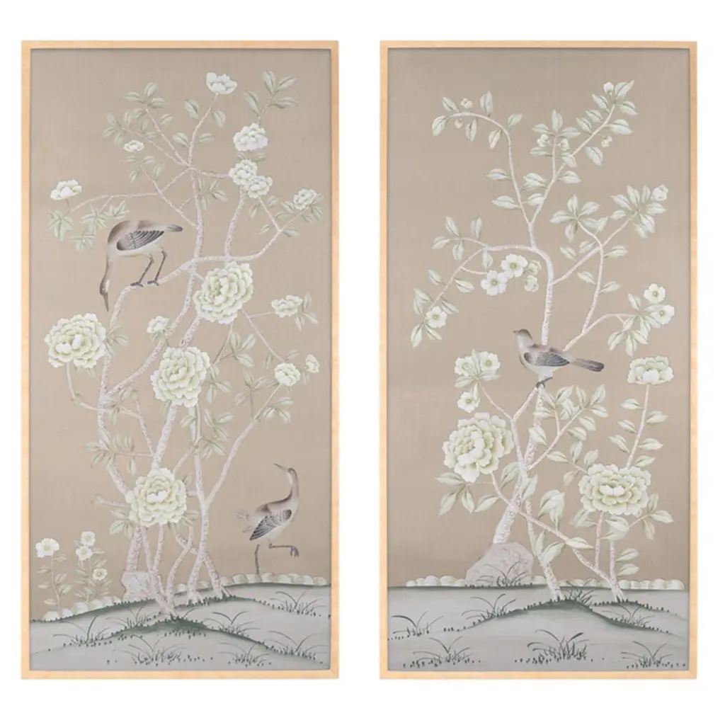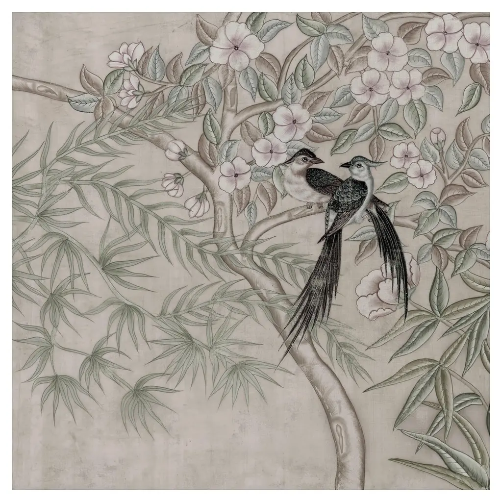 Peacock Block Print Wallpaper, Linen