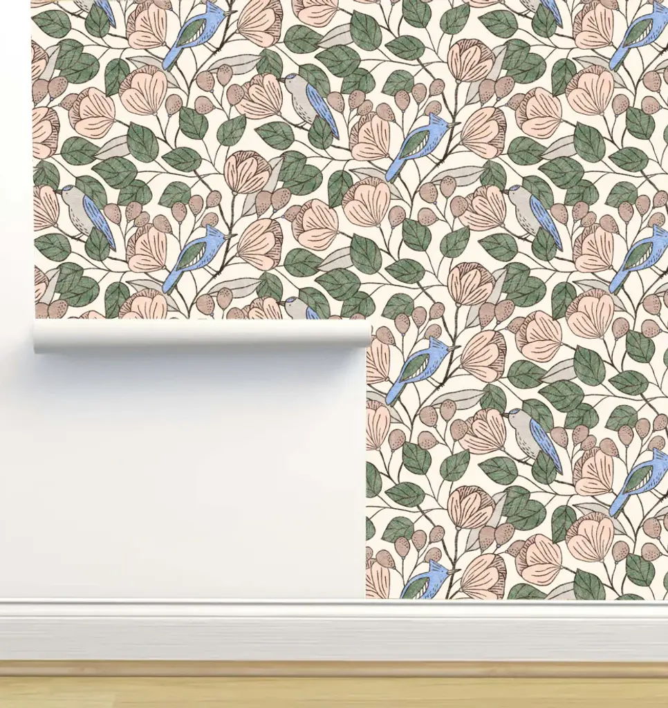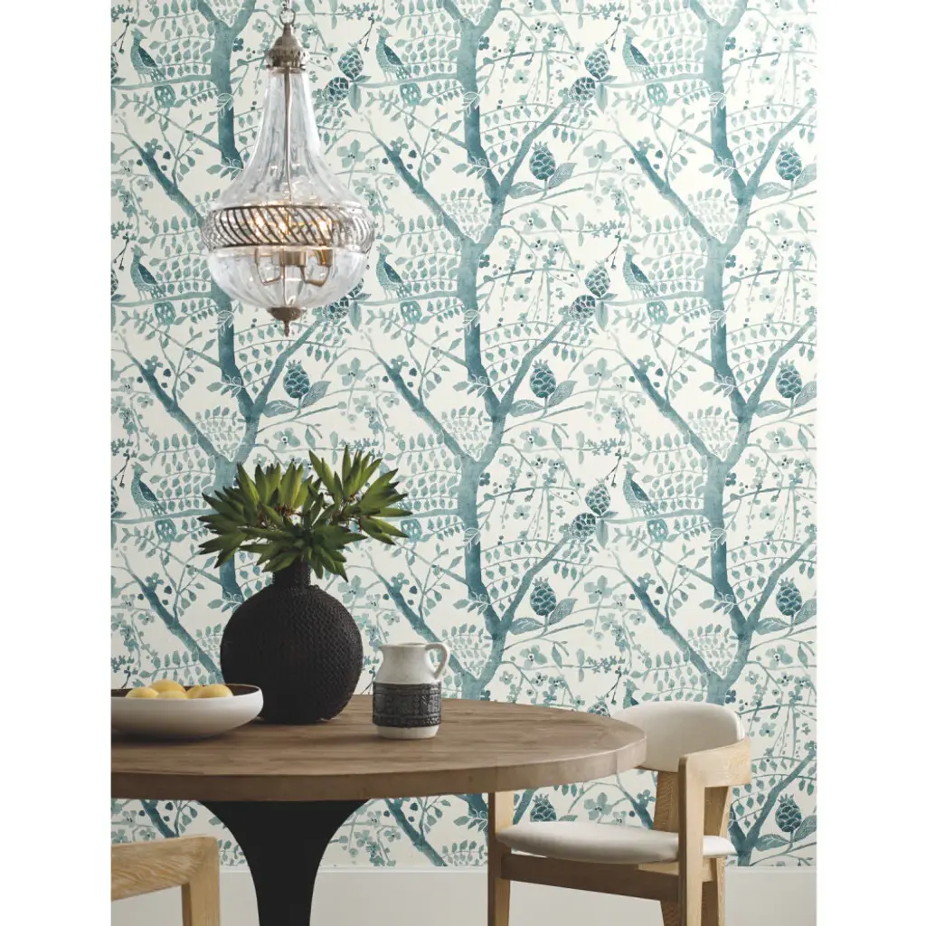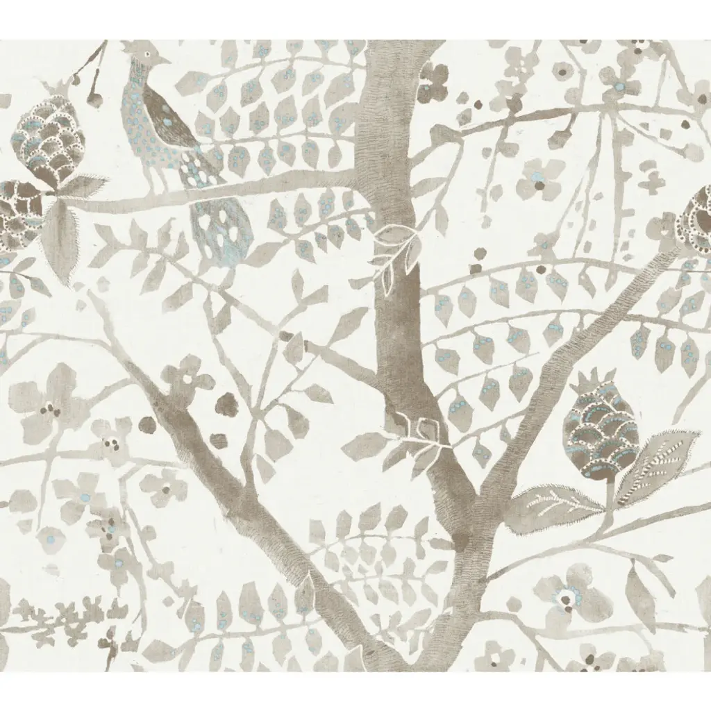 Pattern Peacock Block Print is an abstract bird and branch motif with a textured background inspired by woven linen. This Peacock Block Print Wallpaper measures approximately 27 inches wide by 27 feet long, covering About 60.8 square feet per roll. Durable and easy to remove from primed walls, this friendly to hang unpasted nonwoven wallpaper is created with a special blend of synthetic fibers, making it both easy to hang and tear resistant. Unpasted non woven material; 24-in repeat, straight match; Washable and strippable; 27-in by 27-ft long roll; Covers about 60.8 square feet