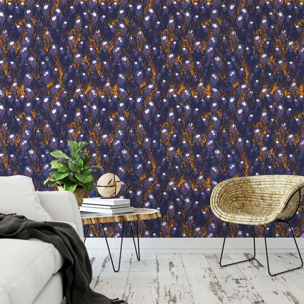 Peacock Feather Mix Purple Wallpaper By Monor Designs, 24"x72"