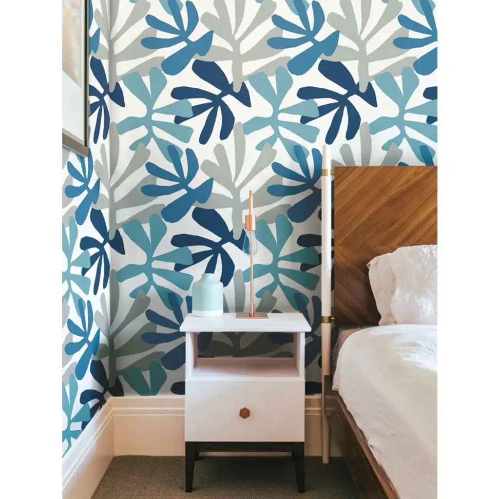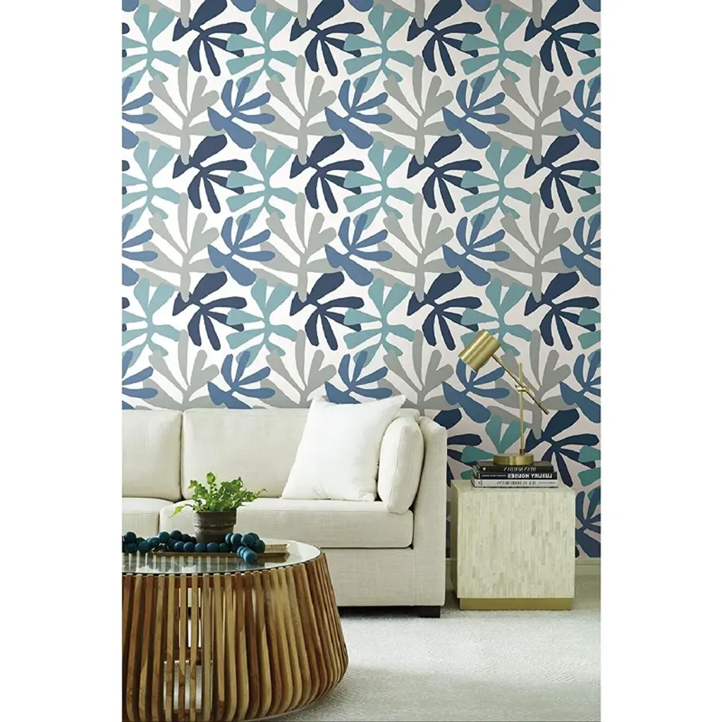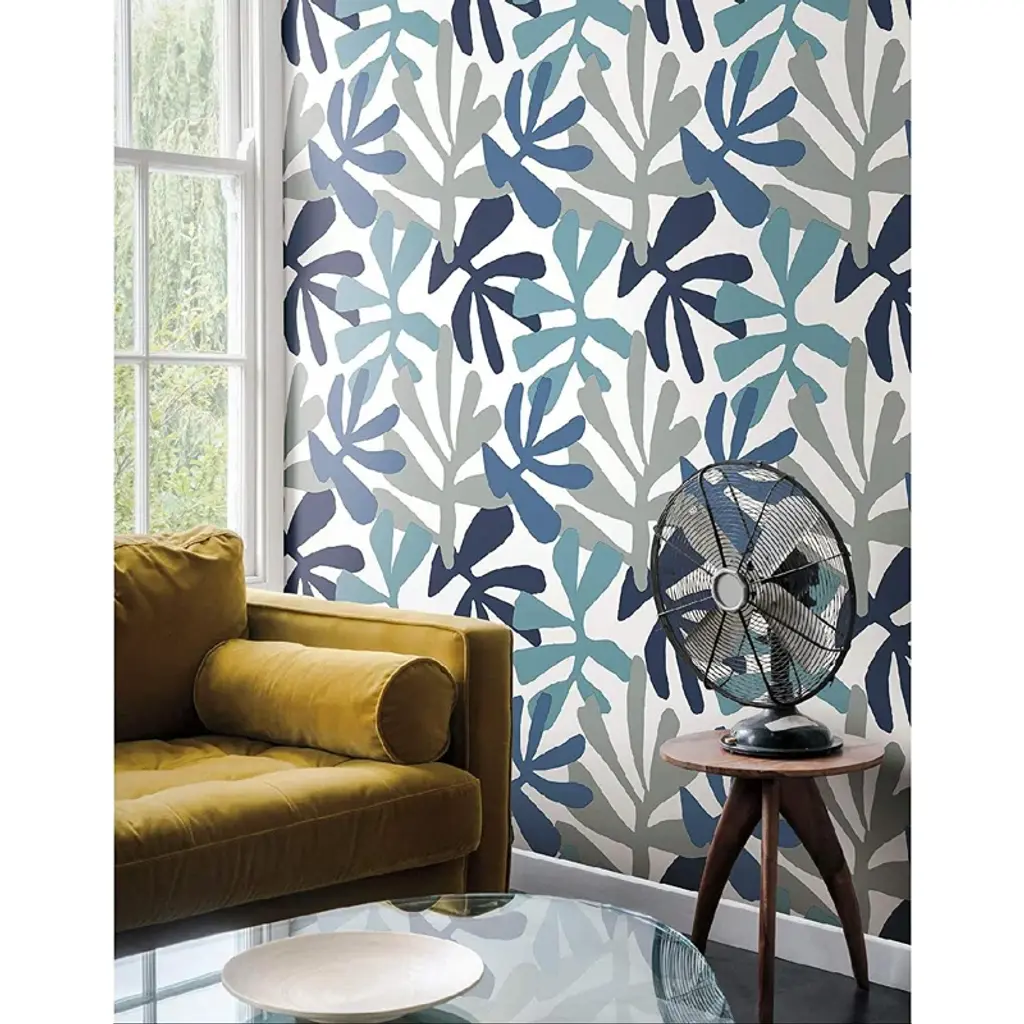 A tastefully vivacious collection with the perfect blend of personality and polish. This product is a superior nonwoven, eco-friendly peel-and-stick wallpaper, which removes easily in full strips without damage to surfaces. Layers of palm leaves provide the art-in-motion feeling of Kinetic tropical.