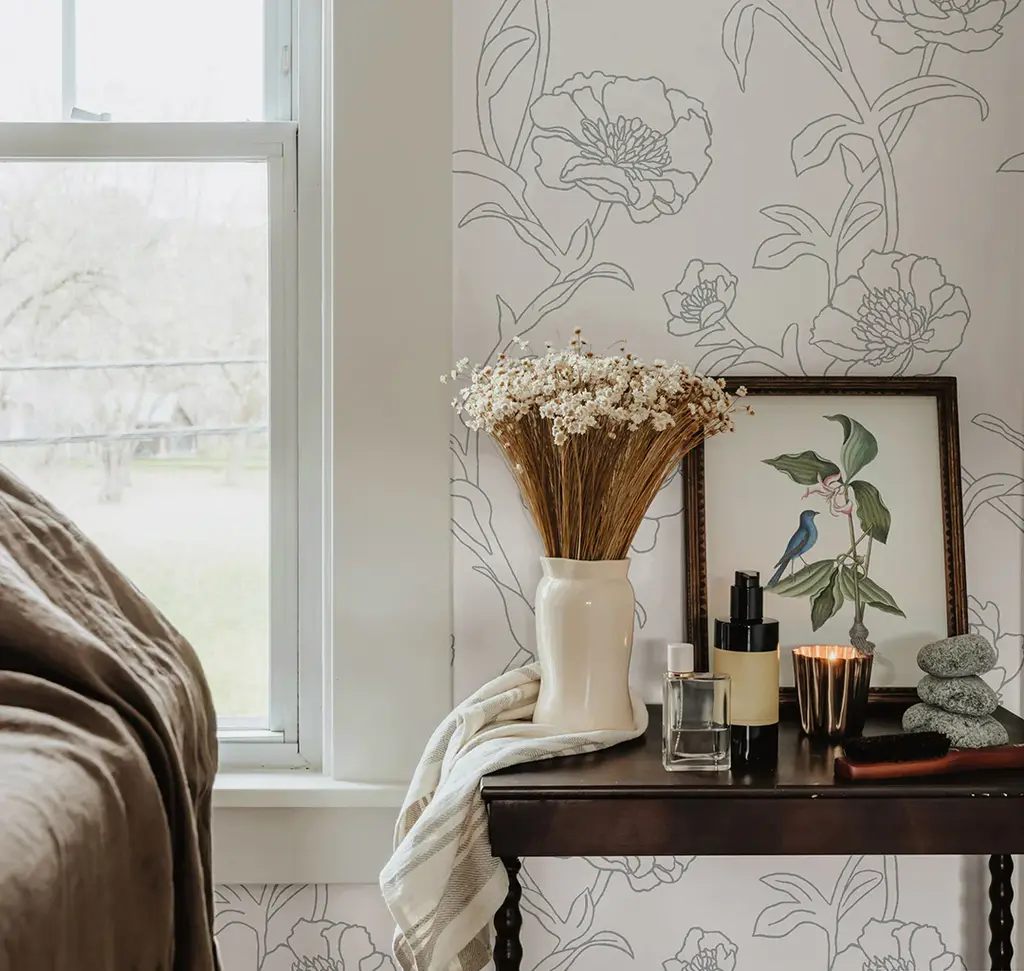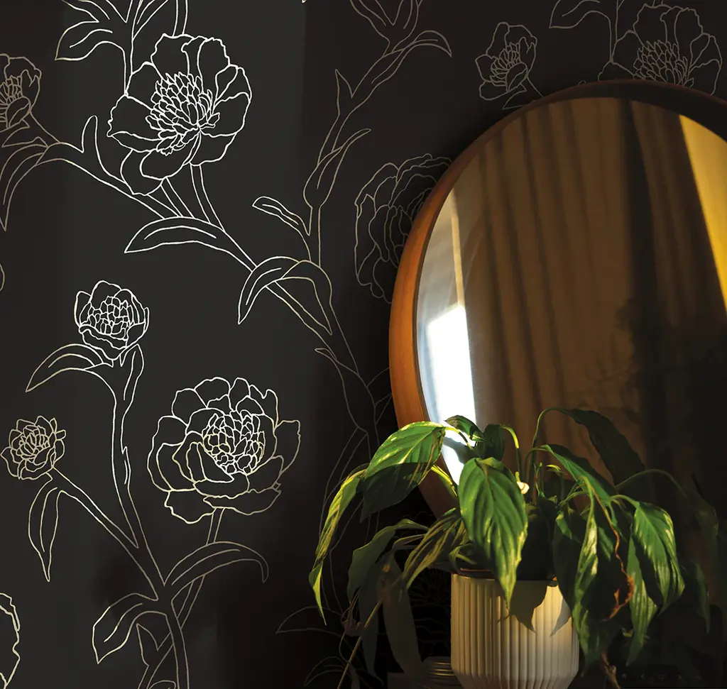 Discover the perennial charm of Tempaper's Peonies design, a stunning hand-drawn floral peel and stick wallpaper featuring flowing peonies in a metallic gold outline. This best-selling flower wallpaper brings an elegant look that enhances both youthful and sophisticated spaces, making it a versatile choice for classic, contemporary, and heritage-style decor. Enjoy the timeless beauty of this distinguished floral wallpaper for as long as you wish; when it’s time for a fresh look, simply peel off and remove with ease. Tempaper & Co., the pioneers of peel and stick wallpaper, offers décor enthusiasts the freedom to be wonderfully creative when decorating. DIY-friendly product allows you to embrace pattern, texture, and color, and to create bold and expressive interiors that can be as temporary or as permanent as you like. Installation is a breeze, and it removes cleanly without harming walls. Breakthrough, proprietary product uses clean materials and meets strict standards. Apply peel and stick wallpaper to walls, stair risers, furniture, ceilings, bathrooms and more. The product works best when applied to surfaces that have been primed and painted with an eggshell, satin, or semi-gloss finish. Applications on flat and matte paints and textured surfaces are not recommended. Features Samples: Due to variances in color perception with a monitor, samples are available and strongly recommended.