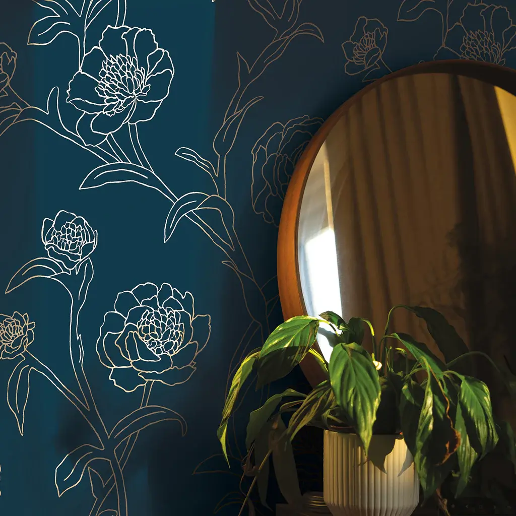 Discover the perennial charm of Tempaper's Peonies design, a stunning hand-drawn floral peel and stick wallpaper featuring flowing peonies in a metallic gold outline. This best-selling flower wallpaper brings an elegant look that enhances both youthful and sophisticated spaces, making it a versatile choice for classic, contemporary, and heritage-style decor. Enjoy the timeless beauty of this distinguished floral wallpaper for as long as you wish; when it’s time for a fresh look, simply peel off and remove with ease. Tempaper & Co., the pioneers of peel and stick wallpaper, offers décor enthusiasts the freedom to be wonderfully creative when decorating. DIY-friendly product allows you to embrace pattern, texture, and color, and to create bold and expressive interiors that can be as temporary or as permanent as you like. Installation is a breeze, and it removes cleanly without harming walls. Breakthrough, proprietary product uses clean materials and meets strict standards. Apply peel and stick wallpaper to walls, stair risers, furniture, ceilings, bathrooms and more. The product works best when applied to surfaces that have been primed and painted with an eggshell, satin, or semi-gloss finish. Applications on flat and matte paints and textured surfaces are not recommended. Features Samples: Due to variances in color perception with a monitor, samples are available and strongly recommended.