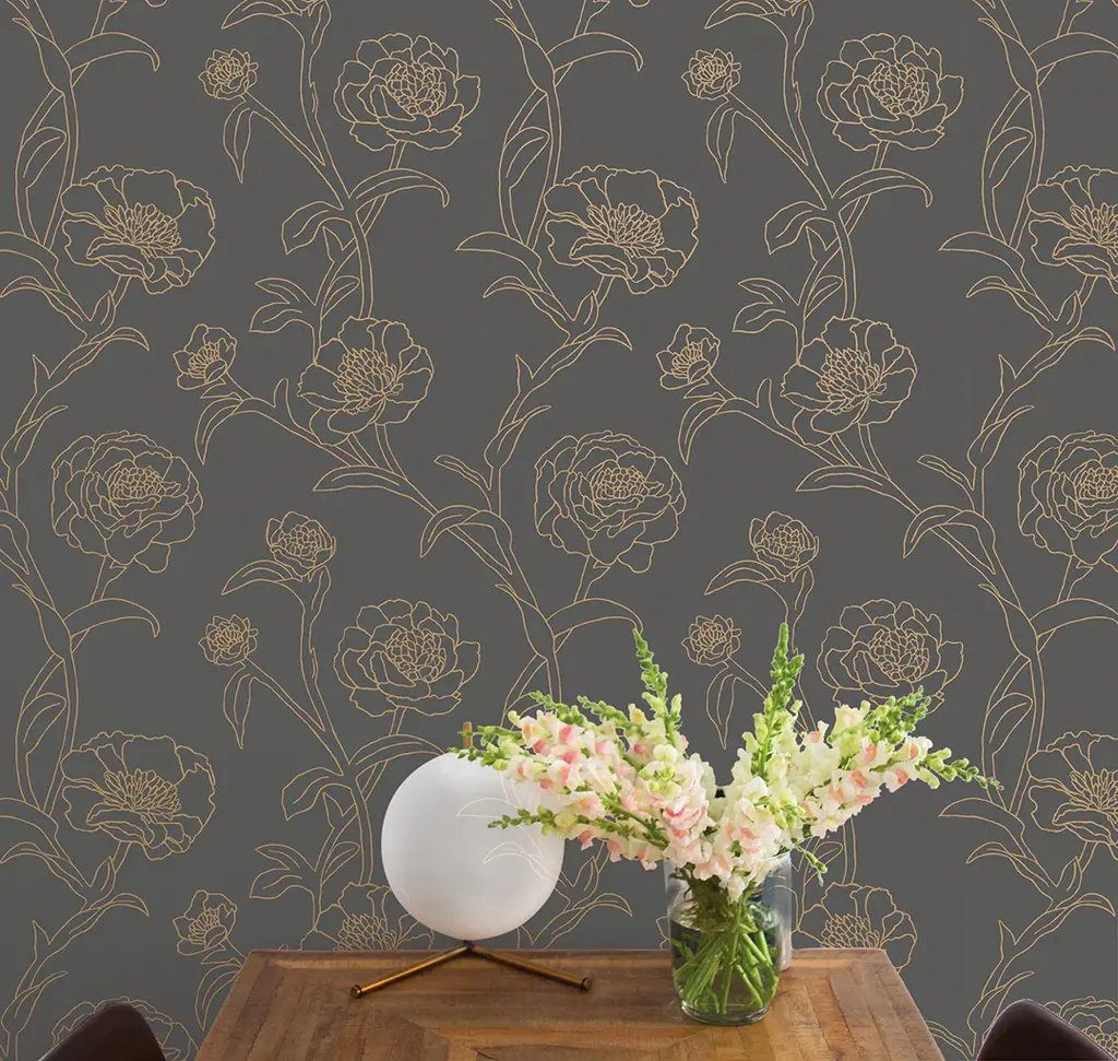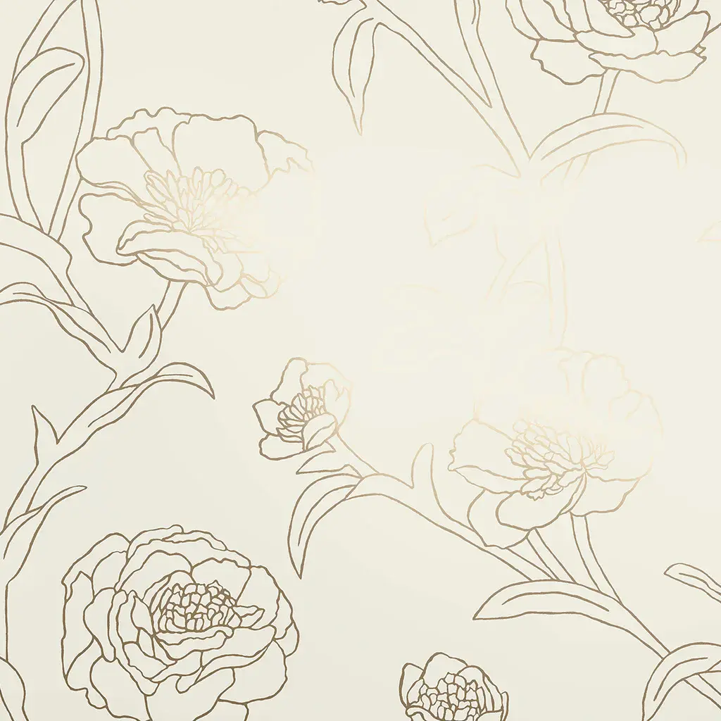Discover the perennial charm of Tempaper's Peonies design, a stunning hand-drawn floral peel and stick wallpaper featuring flowing peonies in a metallic gold outline. This best-selling flower wallpaper brings an elegant look that enhances both youthful and sophisticated spaces, making it a versatile choice for classic, contemporary, and heritage-style decor. Enjoy the timeless beauty of this distinguished floral wallpaper for as long as you wish; when it’s time for a fresh look, simply peel off and remove with ease. Tempaper & Co., the pioneers of peel and stick wallpaper, offers décor enthusiasts the freedom to be wonderfully creative when decorating. DIY-friendly product allows you to embrace pattern, texture, and color, and to create bold and expressive interiors that can be as temporary or as permanent as you like. Installation is a breeze, and it removes cleanly without harming walls. Breakthrough, proprietary product uses clean materials and meets strict standards. Apply peel and stick wallpaper to walls, stair risers, furniture, ceilings, bathrooms and more. The product works best when applied to surfaces that have been primed and painted with an eggshell, satin, or semi-gloss finish. Applications on flat and matte paints and textured surfaces are not recommended. Features Samples: Due to variances in color perception with a monitor, samples are available and strongly recommended.