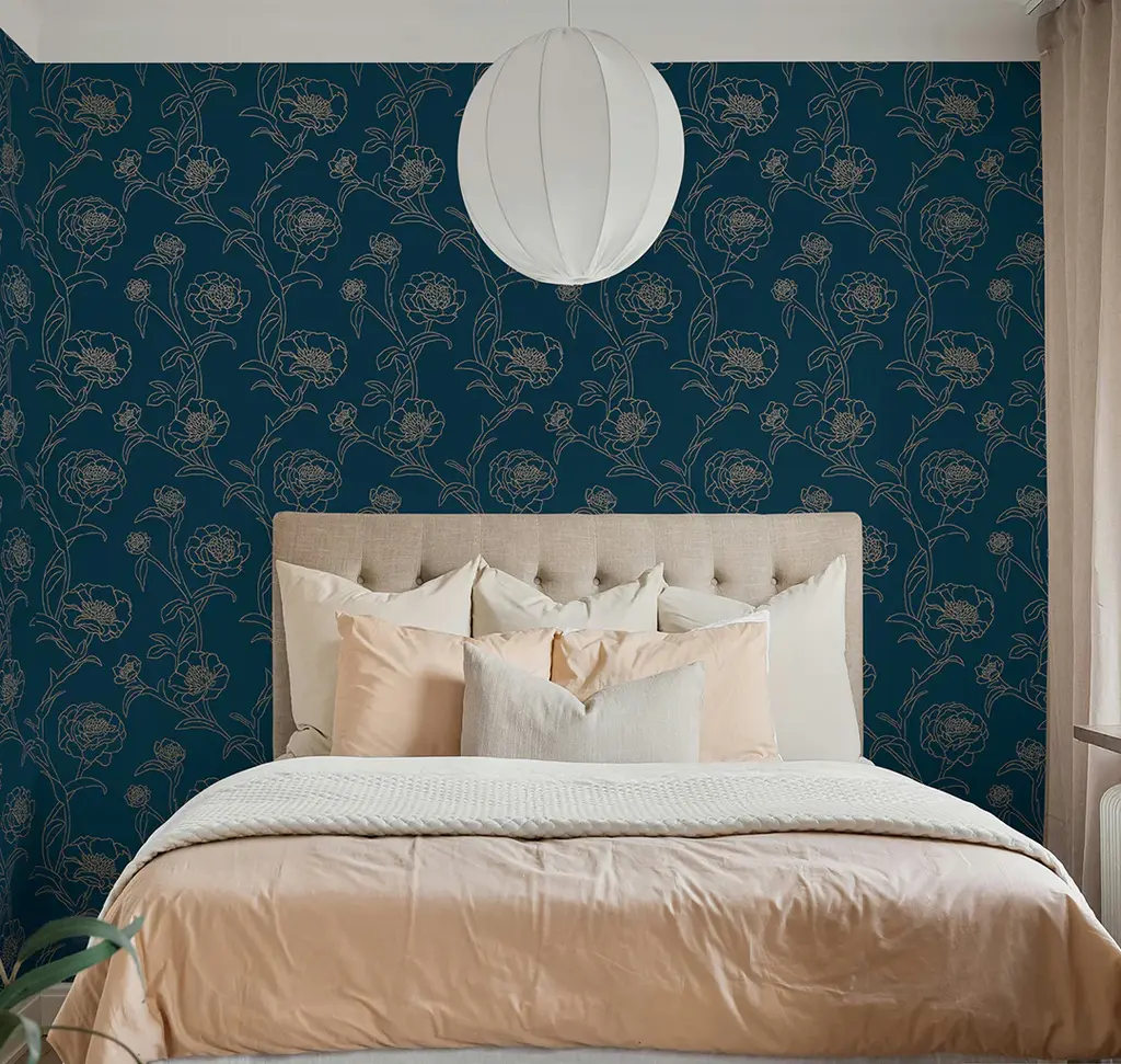 Discover the perennial charm of Tempaper's Peonies design, a stunning hand-drawn floral peel and stick wallpaper featuring flowing peonies in a metallic gold outline. This best-selling flower wallpaper brings an elegant look that enhances both youthful and sophisticated spaces, making it a versatile choice for classic, contemporary, and heritage-style decor. Enjoy the timeless beauty of this distinguished floral wallpaper for as long as you wish; when it’s time for a fresh look, simply peel off and remove with ease. Tempaper & Co., the pioneers of peel and stick wallpaper, offers décor enthusiasts the freedom to be wonderfully creative when decorating. DIY-friendly product allows you to embrace pattern, texture, and color, and to create bold and expressive interiors that can be as temporary or as permanent as you like. Installation is a breeze, and it removes cleanly without harming walls. Breakthrough, proprietary product uses clean materials and meets strict standards. Apply peel and stick wallpaper to walls, stair risers, furniture, ceilings, bathrooms and more. The product works best when applied to surfaces that have been primed and painted with an eggshell, satin, or semi-gloss finish. Applications on flat and matte paints and textured surfaces are not recommended. Features Samples: Due to variances in color perception with a monitor, samples are available and strongly recommended.
