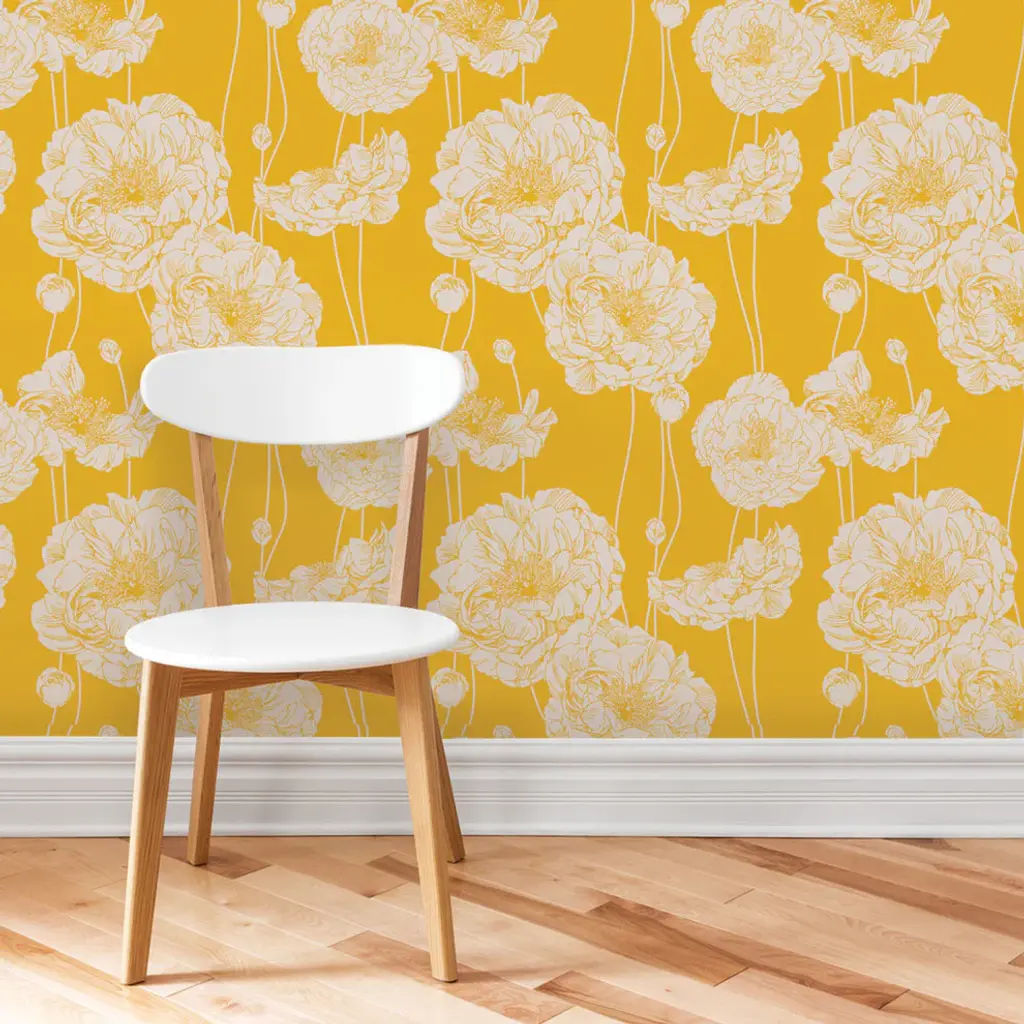 Peony Peel And Stick Vinyl Wallpaper, Yellow, 24"w X 108"h