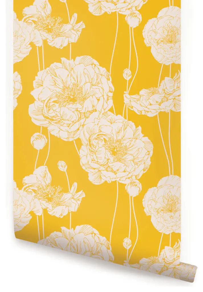 Peony Peel And Stick Vinyl Wallpaper, Yellow, 24"w X 60"h