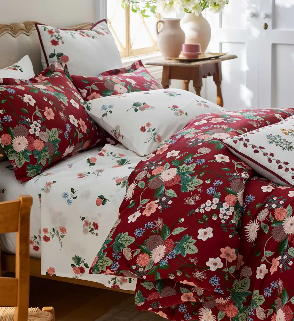 Inspired by vintage wallpaper florals, our hand-painted Dahlia print features intricate blooms in a warm, classic color palette, reimagined for fall. Complete the set by layering this cozy duvet cover with coordinating sheets and accent pillows (sold separately). Our breathable percale bedding collection is an excellent choice for year-round use. Part of our Rifle Paper Co. x The Company Store collection.