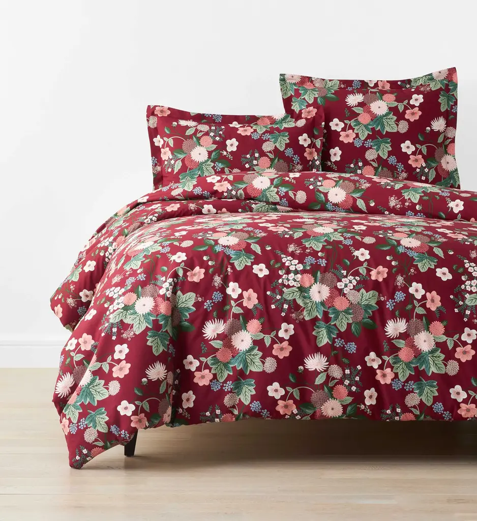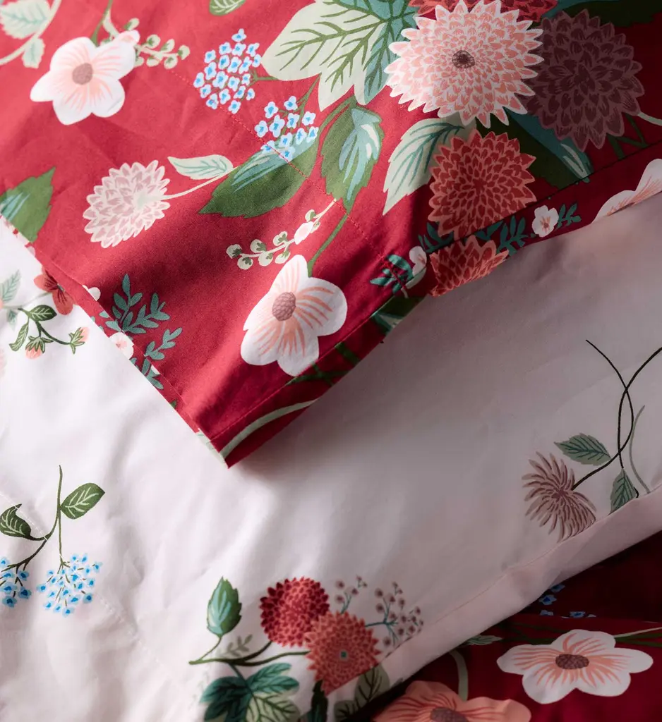 Inspired by vintage wallpaper florals, our hand-painted Dahlia print features intricate blooms in a warm, classic color palette, reimagined for fall. This crisp, breathable percale bedding collection is an excellent choice for year-round use. Complete the set with the coordinating pillow cases, duvet cover, comforter, and accent pillows. Part of the Rifle Paper Co. x The Company Store collection.