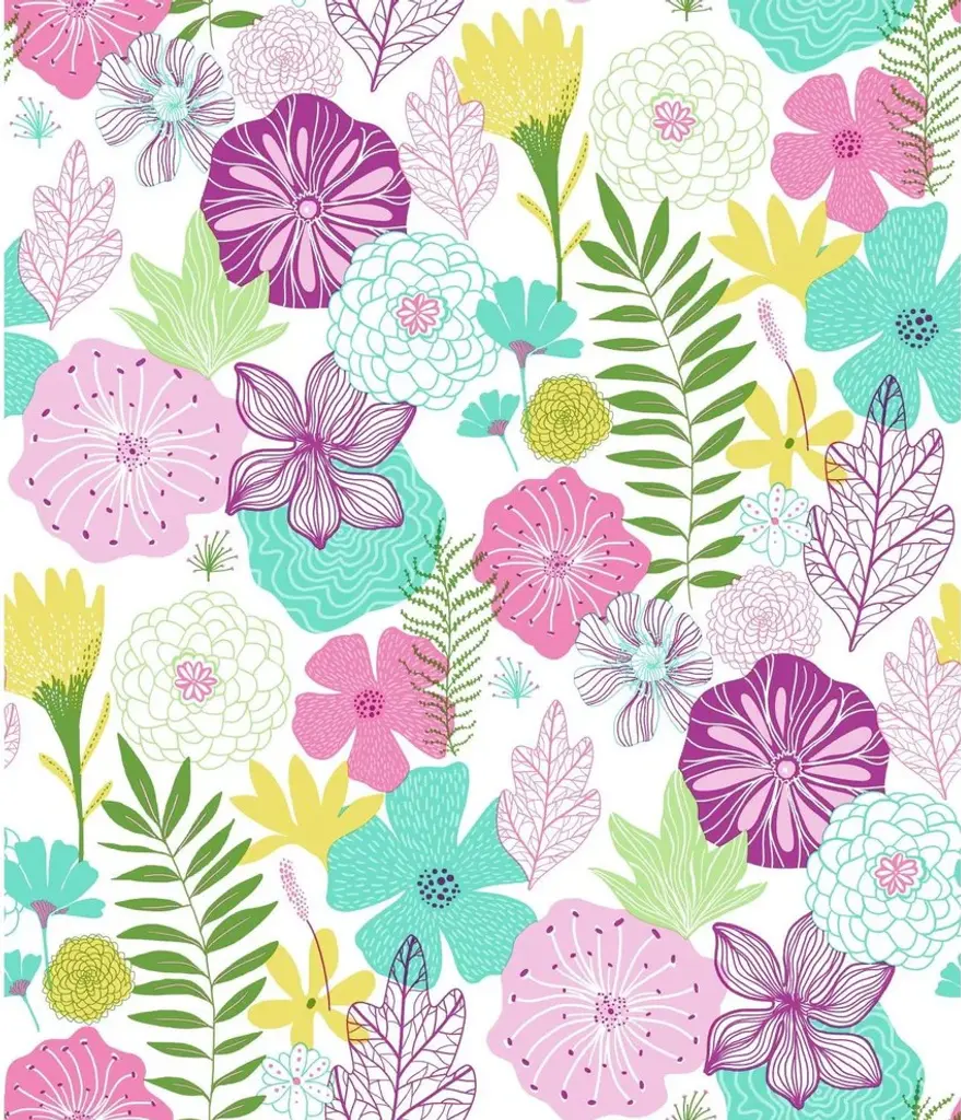 Walls become a backyard garden with Pink Perennial Blooms Peel and Stick Wallpaper by RoomMates. This pattern, inspired by the natural world, gives any surface a dimensional look with little effort. Add architectural details to any space for an accent wall, full room makeover, furniture DIY, and more. Simply cut the peel and stick wallpaper to size, remove the backing, and stick to any smooth, clean surface. Pull off the wall in full sheets when it�s time to redecorate: no sticky residue or damage left behind. Bring the natural world into your home with peel and stick wallpaper from RoomMates. 24 inch Repeat, Straight Match , Covers 28.29 Square Feet