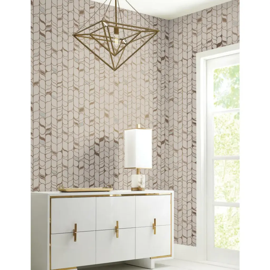 Designer Candice Olson�s?exceptional?design signature?continues?to reflect?the?breathtaking?color,�elegance?and patterns?of?the natural world in this second edition of?her?best-selling fine wallcoverings?collection?Modern Nature.???� Durable and easy to remove from primed walls, this friendly to hang unpasted nonwoven wallpaper is created with a special blend of synthetic fibers, making it both easy to hang and tear resistant. Liquid metallic lines of shimmer create a framework of modern organic stems in pattern Perfect Petals. Includes 1 roll - 20.8 in x 32.79 ft = 56.84 sq ft with a straight match and 20.8 in. repeat.