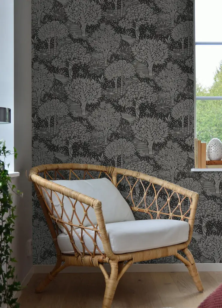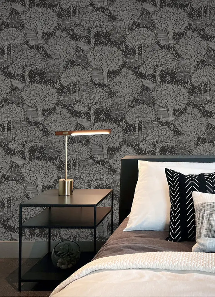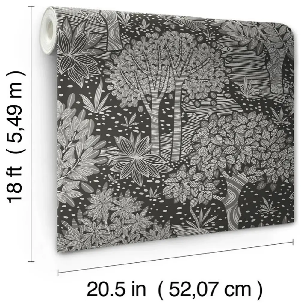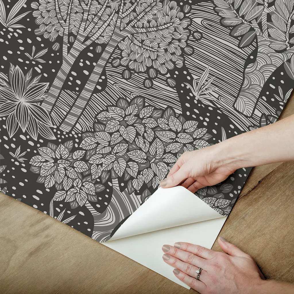 Bring home the urban forest of Perth to your space with this peel and stick wallpaper print! This botanical pattern features a variety of Australian trees and shrubbery in charcoal and black inks. Installation is as simple as Peel, Stick�Done!� Perth Black Peel and Stick Wallpaper comes on one roll that measures 20.5 inches wide by 18 feet long. Black and grey peel and stick wallpaper with a botanical tree pattern.; Peel and stick to apply, pull up to remove; RoomMates is safe for walls and leaves no sticky residue behind; Easily repositionable while installing; RoomMates sticks to any smooth, flat surface - perfect for DIY projects; Ideal for rental or home decorating; Comes on a 20.5-in x 18-ft roll and covers about 30.75 sq. ft; Design repeat of 24-in; This product should NOT be applied to textured walls - smooth clean, dry, painted surface only (no Non-Stick paint or soap residue).