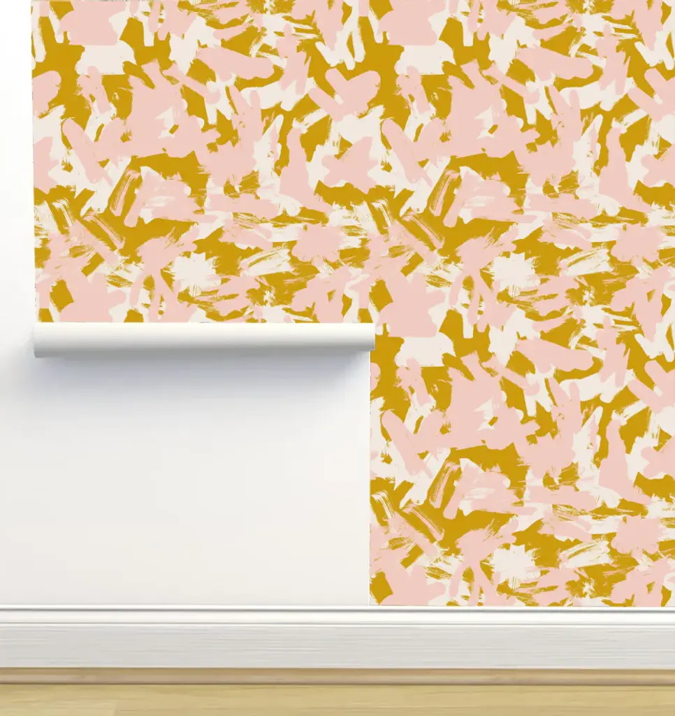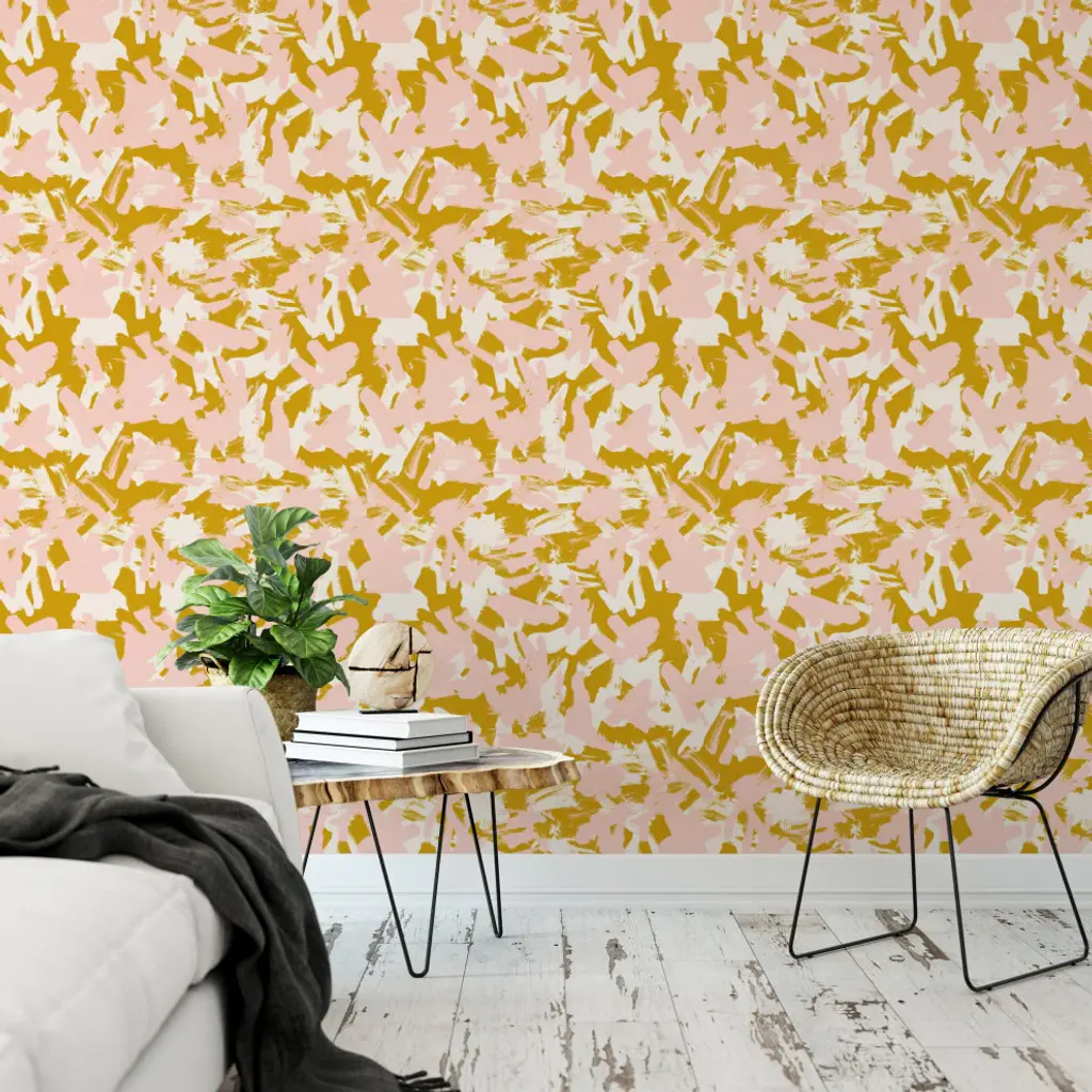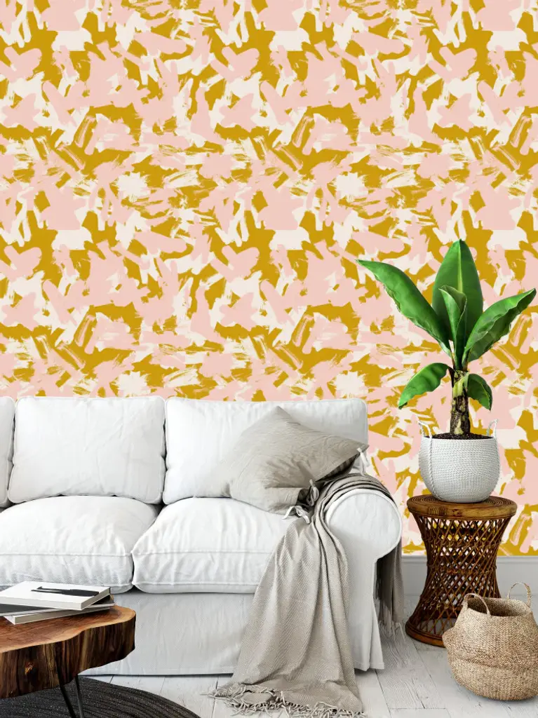 Pink Mustard Brush Wallpaper By Julia Schumacher, 24"x72"