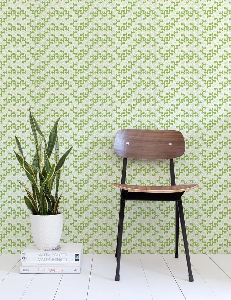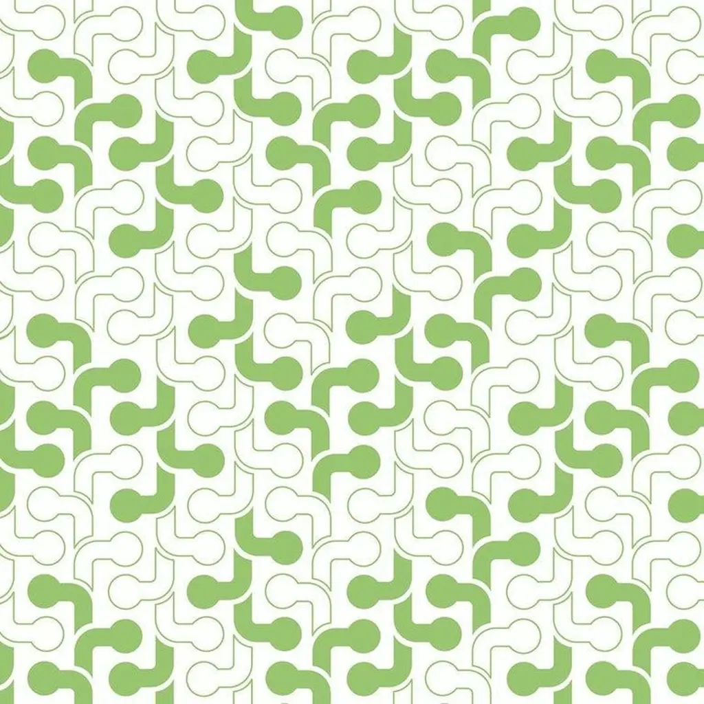 Pipes Designer Retro Geometric Wallpaper In Lime 'Kelly Green On White'