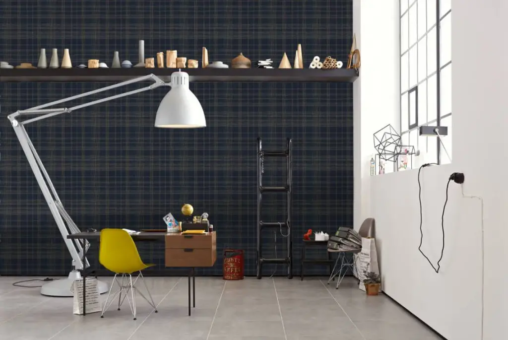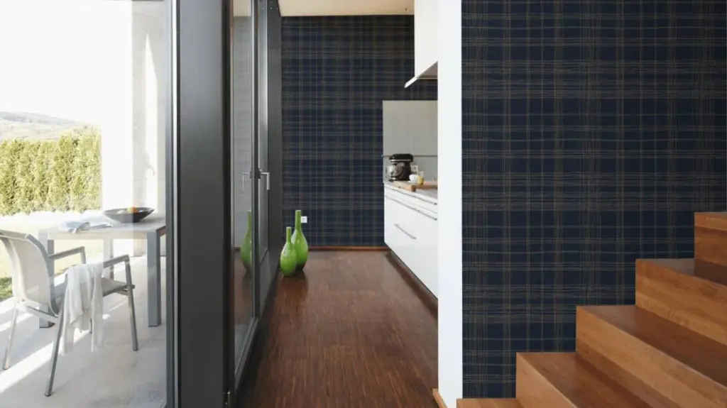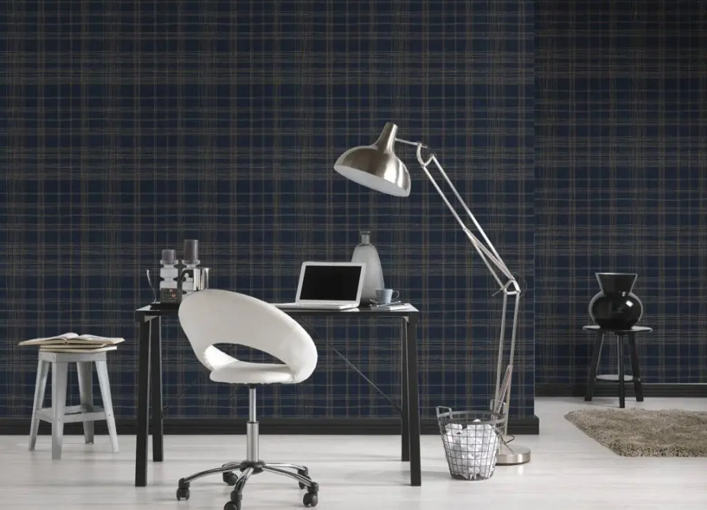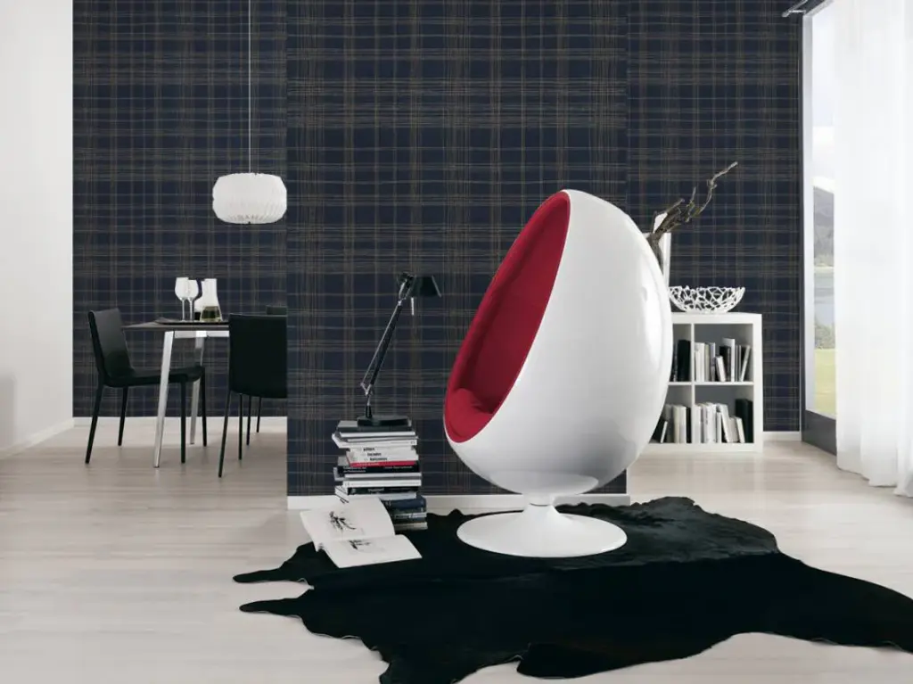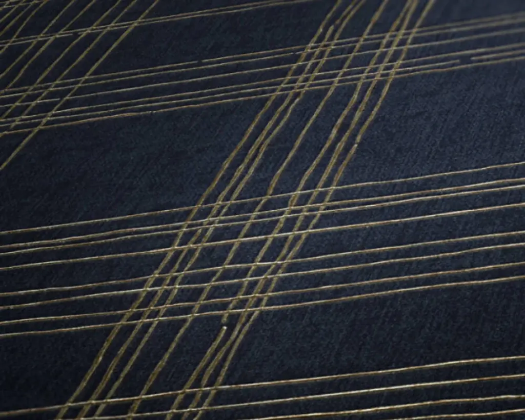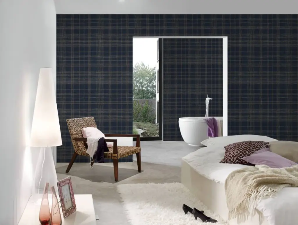 Plaided Textured Wallpaper, Geometric Lines, Blue Black Gold Metallic, 1 Roll