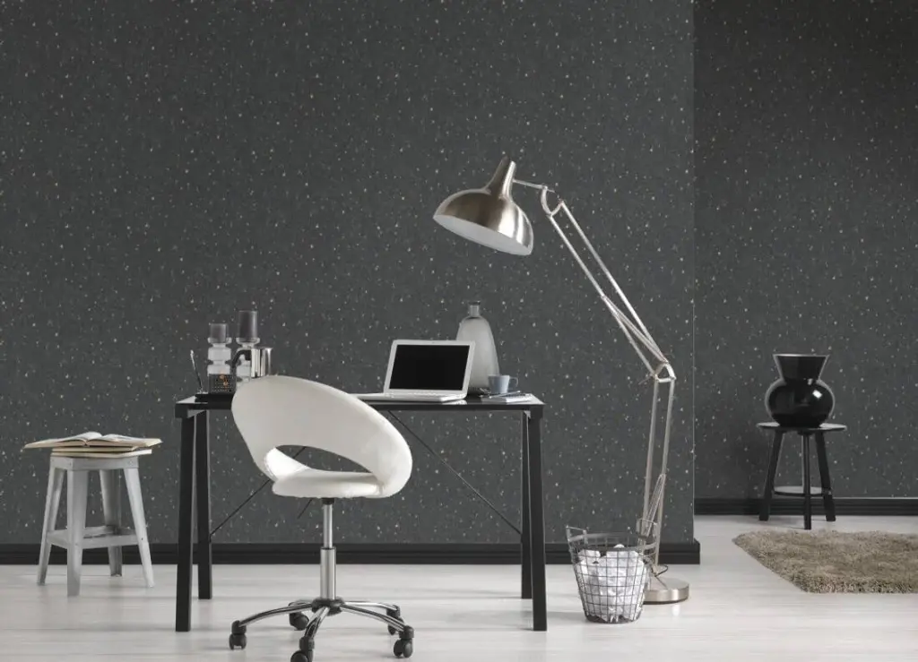 Plain Textured Wallpaper, Scattered Spots, Black Anthracite, 1 Roll
