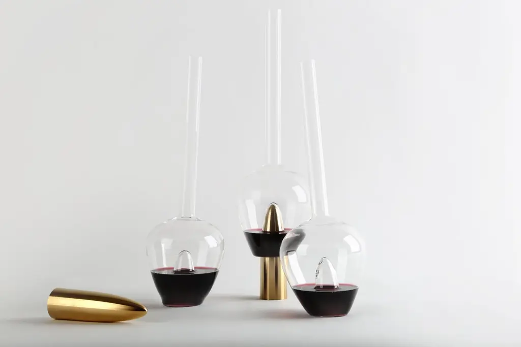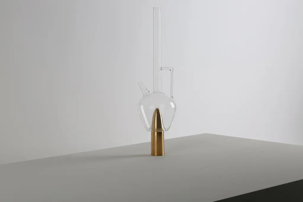 Plugged Carrafe by Richard YasmineMaterials: hand-blown borosilicate glass with solid brushed brass baseDimensions: D 10 x H 32 cmMade of solid brushed brass and a very thin hand-blown borosilicate glass mixed together to form one dramatically enchanting unit. The metamorphosed glass jug imitates the shape of the brass rod and covers half of this element in a sensational way. The main purpose is a firm base to maintain the stability of the entire design but definitely with a message behind; “protect yourself”, safe sex is absolutely essential to avoid unwanted consequences. A very neat contrast between the materials used light / heavy, transparent / dense, weak / strong reflects the male’s and female‘s organs represented as a daily useful object. Plugged is a sort of continuation in a way or so to my previous Glory Holes soliflore/table, I am trying to explore the Phallique shape and studying it from different angles, working on a certain philosophy or a story, I’m trying to work on how often I can incorporate it in our daily objects, but in a concealed way, making people using those objects for the daily propose, holding a piece of art which they usually classify it under a big title “taboo”. .., adding the shape is helping me to create actually appealing objects yet very functional.when creating a design piece i try to focus on taboos in our society as I said previously focusing also on wrong problems or actions in the society I want people to think, ask and believe in diversity, equality, feminism regardless of religion, skin color, sexual orientation and lots of other matters that some are still scared to talk about …I urge the society to connect with the other interact try to know the other without prejudgment and that’s what makes me create controversial design objects.Richard Yasmine a Lebanese interior architect and product designer, filled with imagination using his imaginary world as a simulation to try out new ideas and create new objects inspired of life, objects and emotions, the human body: physiology and needs, but also focuses on internal chaos combined with a certain innate sensitivity; sometimes extreme and provocative or even not expected by others but still minimal, bold, and straightforward without disguising or hiding true reality. He never tends to identify the difference between reality and imagination this what helps him creating intriguing and controversial design objects yet complicated in the process of production however this is distinctive in his personality.Trying always to incorporate a fresh approach sticking to his culture and tradition, frequently in a muddled process but a precise immaculate result not following any specific period or trend but a reflection of his own image. Integrating the Middle Eastern specifically the Lebanese knowhow and spirit within the recipe of each of his products; collaborating with craftsmen, consequently to reveal the oriental feel through an extravagant aspect, searching to spread the marriage between tradition and new technologies, by keeping his signature identity of commotion mixing craziness to sobriety with a touch of fantasy.He showcased his work at la biennale de St Etienne, Paris design week 2015, Milan design week 2016/2017/2018, Beirut art fair 2015/2016, Beirut design week 2015/2016, Dubai design week 2016 and in design junction during the London design festival 2017, Some of his designs has been featured consecutively in Interni, Domus, wallpaper, living-corrieredellaserra, ad, Icon, ideat, elle decoration, monogram, dezeen, design boom, design milk, highsnobiety, the national, Madame, 7daysuae, interiors, Arch newspaper, interior design NEW York, l’orient le jour and many other local and international blogs and magazines he has been selected by Esquire MIDDLE EAST between the 6 designers to know about in the middle east for 2017 and his work has been featured between the best of Dubai design week 2016 on Yatzer and best of Milan design week 2017 again on Yatzer. He has been interviewed by Elle décor Italia as the Lebanese designer talking about his city Beirut in the “secret Beirut” article as one of numerous other city guides.As for his latest news he showcased in 3 different spaces lately during Milan Design week 2018 and for the first time collaborating with the eclectic Italian brand JCP universe, his latest HAWA Beirut collection and WAKE UP CALL has been selected between the best of MDW18 on Yatzer, yellow trace, Domus, dezeen, design boom and many other press all around the globe, he has been nominated for the emerging designer of the year by Dezeen, lately he revealed his latest work Ô-CULT the water sanctuary, commissioned by the Ministry of Foreign Affairs of Italy curated by la Triennale di Milano design museum, new pieces to be showcased April 2019 during Milan Design Week.