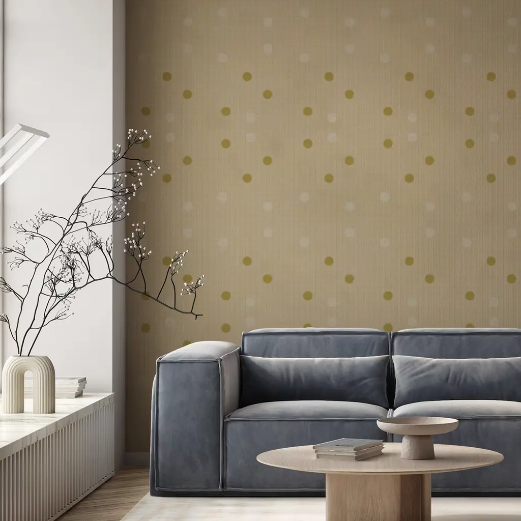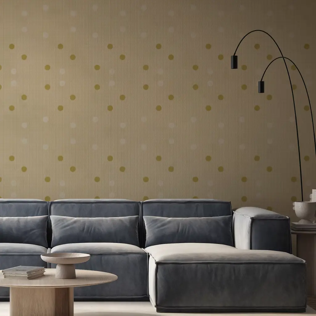 A tribute to the Bauhaus School and its exploration with artistry and technology, this exquisite wallpaper is characterized by a series of dark ochre and white dots on a beige backdrop, the purest and simplest of geometric forms. Made of cellulose, textile fibers, and vinyl, it is fireproof and unscented, breathable, and hypoallergenic. Suitable for the cladding of interior walls, it is also available in the ECO or fiberglass variants. The price is per squared meter.