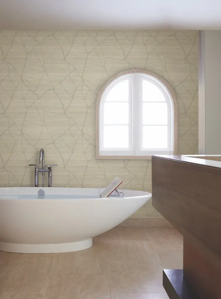 Raska''s grey and light brown painted veining adds a layer of complexity and movement to the golden brown, tan, and grey replication of grasscloth weave. This Raska Wallpaper measures approximately 27 inches wide by 27 feet long, measuring approximately 60.8 square feet per roll. Artistic experimentation with the interplay of form, color and texture has led to an avant-garde reimagining of familiar design motifs. Prepasted sure strip material; 24-in repeat, straight match; Washable and strippable; 27-in by 27-ft long roll; Covers about 60.8 square feet