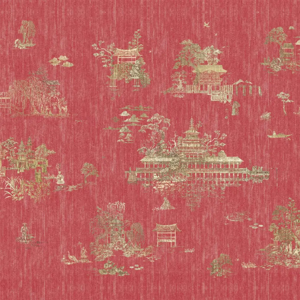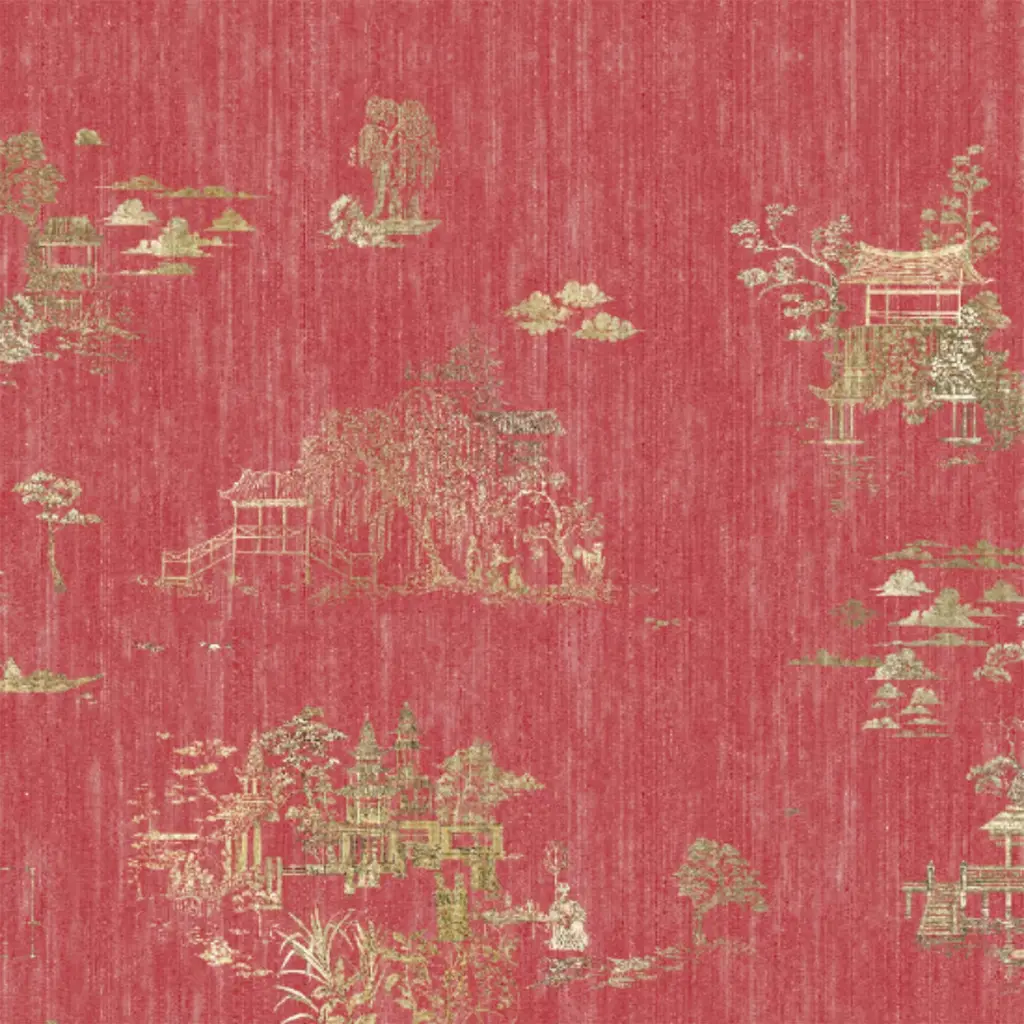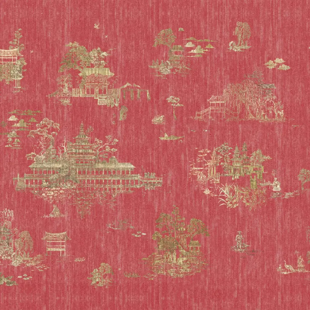 The Red Hours & Blinks Polyester Wallcovering Fabric is a stunning portrayal of oriental life delicately woven into an expansive landscape of contemplation. This exquisite piece features intricate scenes inspired by craftsmanship typical of 12th-century lacquered artifacts, blending rich narratives with a contemporary touch. It is printed on a woven jacquard fabric that enhances the play of light and shadow, offering a captivating three-dimensional effect. The meticulous digital printing technology brings the gold-leaf details to life, glorifying the opulent textures and shapes that define this sophisticated piece. The price is per square meter, with options tailored to specific design needs available. This fabric is also available in an alternative height of 270 cm. Please contact the Concierge for additional information.