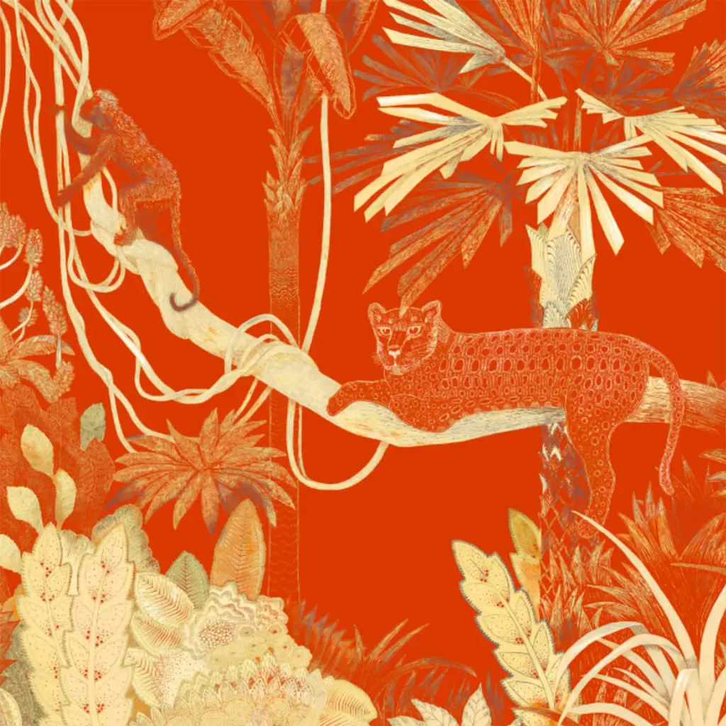 Red Jungle Lounge Polyester Wallcovering Fabric