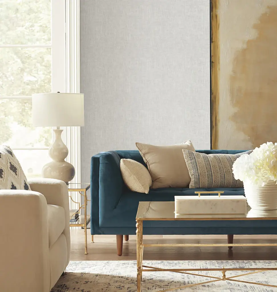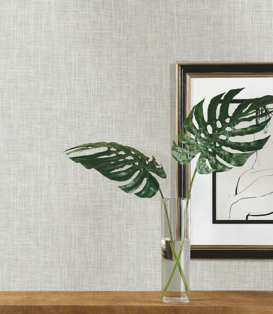 The charm of a simple, handcrafted weave is recreated in the pattern Reed Basket with a warm, quiet style, shown in parchment white on stone gray. This white reed basket peel and stick wallpaper measures 20.5 inches wide by 20 feet long, covering approximately 34.2 square feet per roll. The ultimate pattern inspirations for architectural finishes, motifs, and textures as found in nature. Cerused woodgrain, distinctive woven grass, cork, stone, clay, marble, and mother of pearl bring warmth and depth to surrounding spaces with familiar comfort. Peel and Stick non woven material; 24-in repeat, straight match; Washable and fully removable; 27-in by 20-ft long roll; Covers about 45 square feet