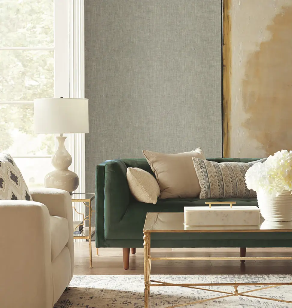 The charm of a simple, handcrafted weave is recreated in the pattern Reed Basket with a warm, quiet style, shown in nut brown on coal black. This brown reed basket peel and stick wallpaper measures 20.5 inches wide by 20 feet long, covering approximately 34.2 square feet per roll. The ultimate pattern inspirations for architectural finishes, motifs, and textures as found in nature. Cerused woodgrain, distinctive woven grass, cork, stone, clay, marble, and mother of pearl bring warmth and depth to surrounding spaces with familiar comfort. Peel and Stick non woven material; 24-in repeat, straight match; Washable and fully removable; 27-in by 20-ft long roll; Covers about 45 square feet