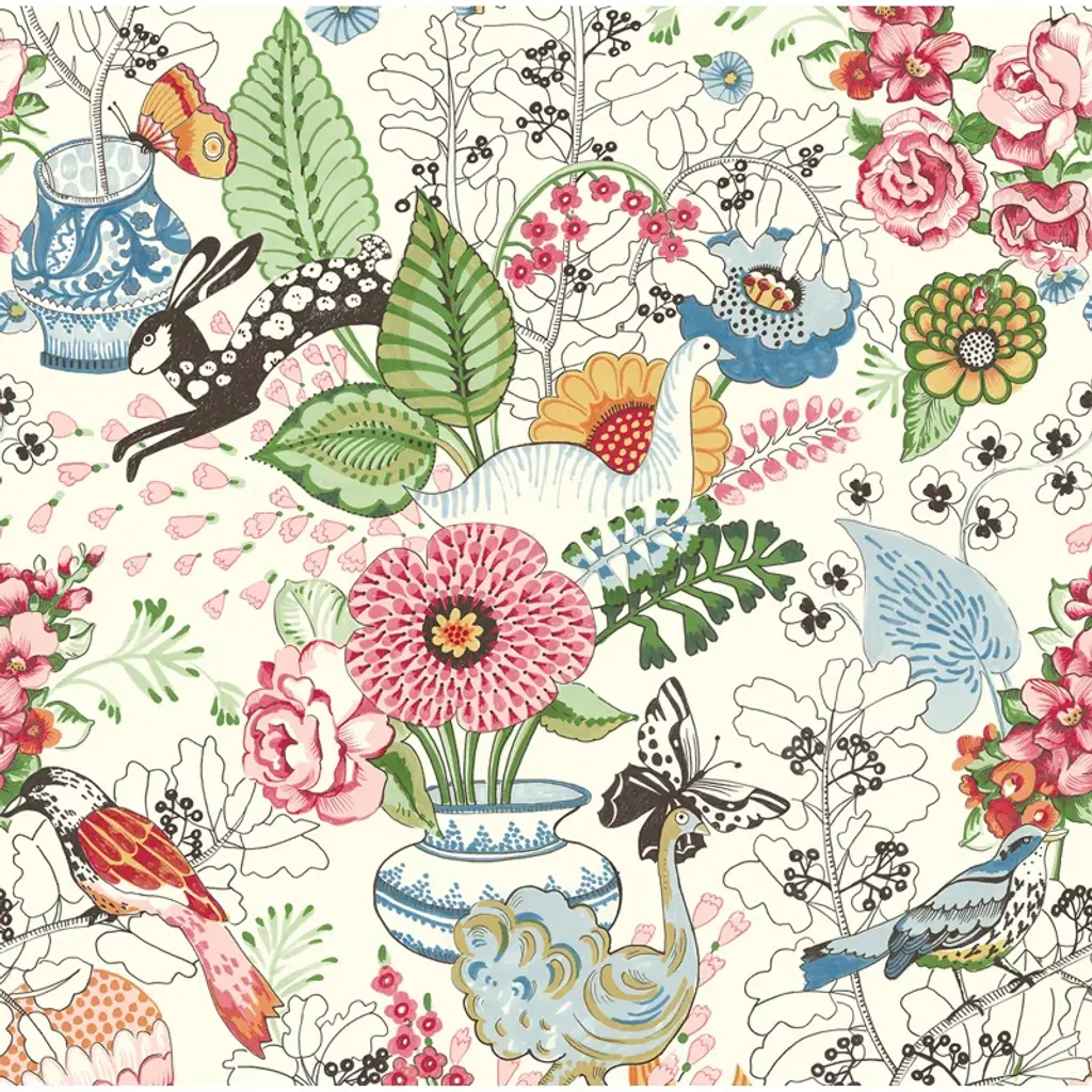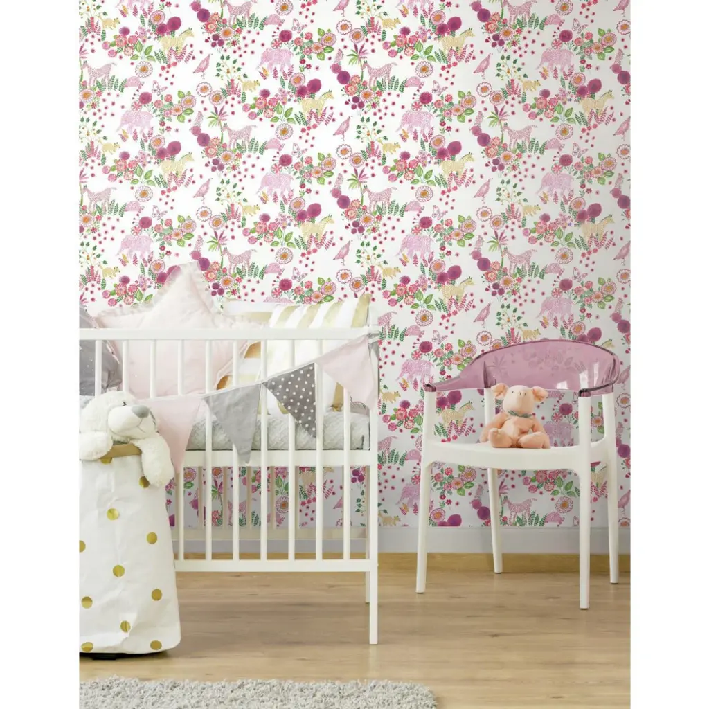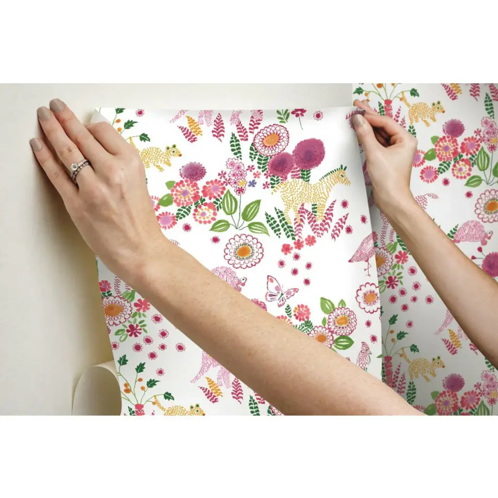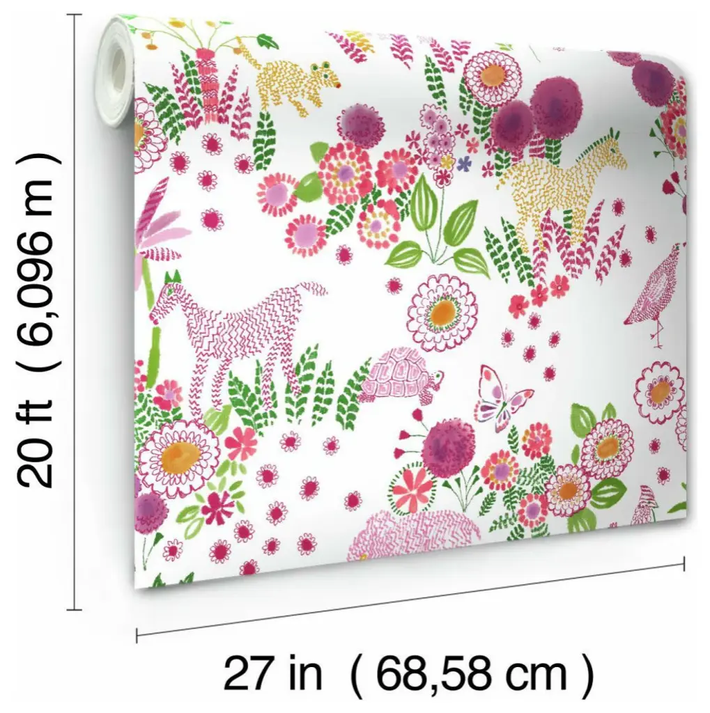 This product is a superior luxury non-woven peel and stick wallpaper, which removes easily in full strips without damage to surfaces.Pattern Reverie''s field of bright florals and prancing ponies create a dreamy fantasy scenic. Includes 1 roll - 27 in x 20 ft = 45 sq ft with a drop match and 24 in inch repeat.