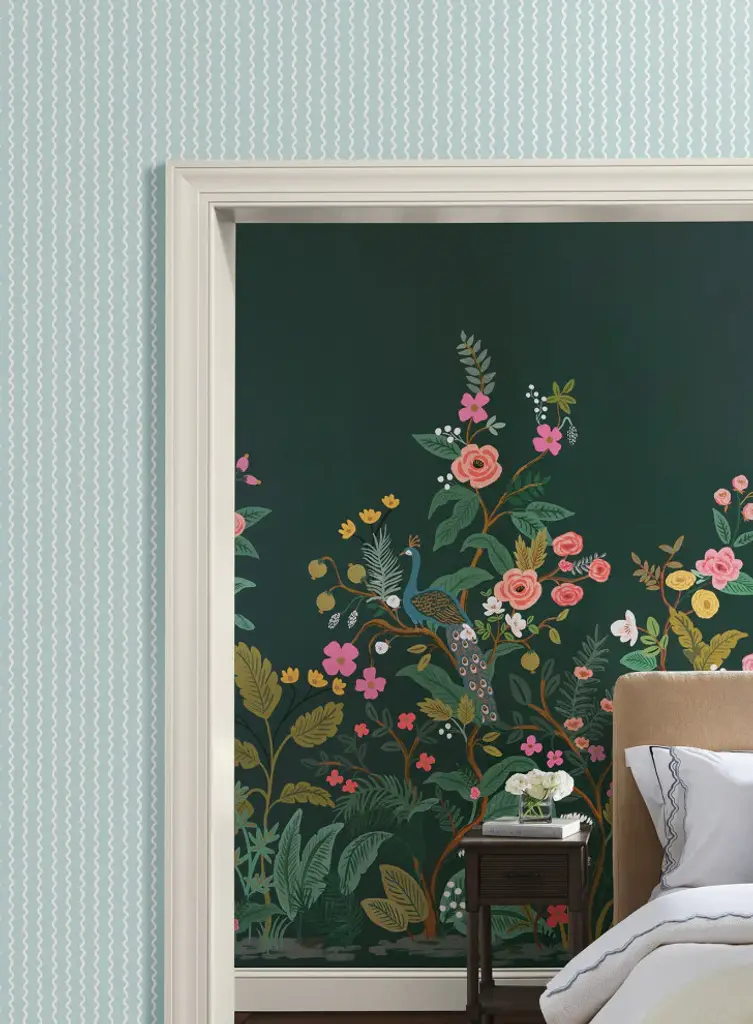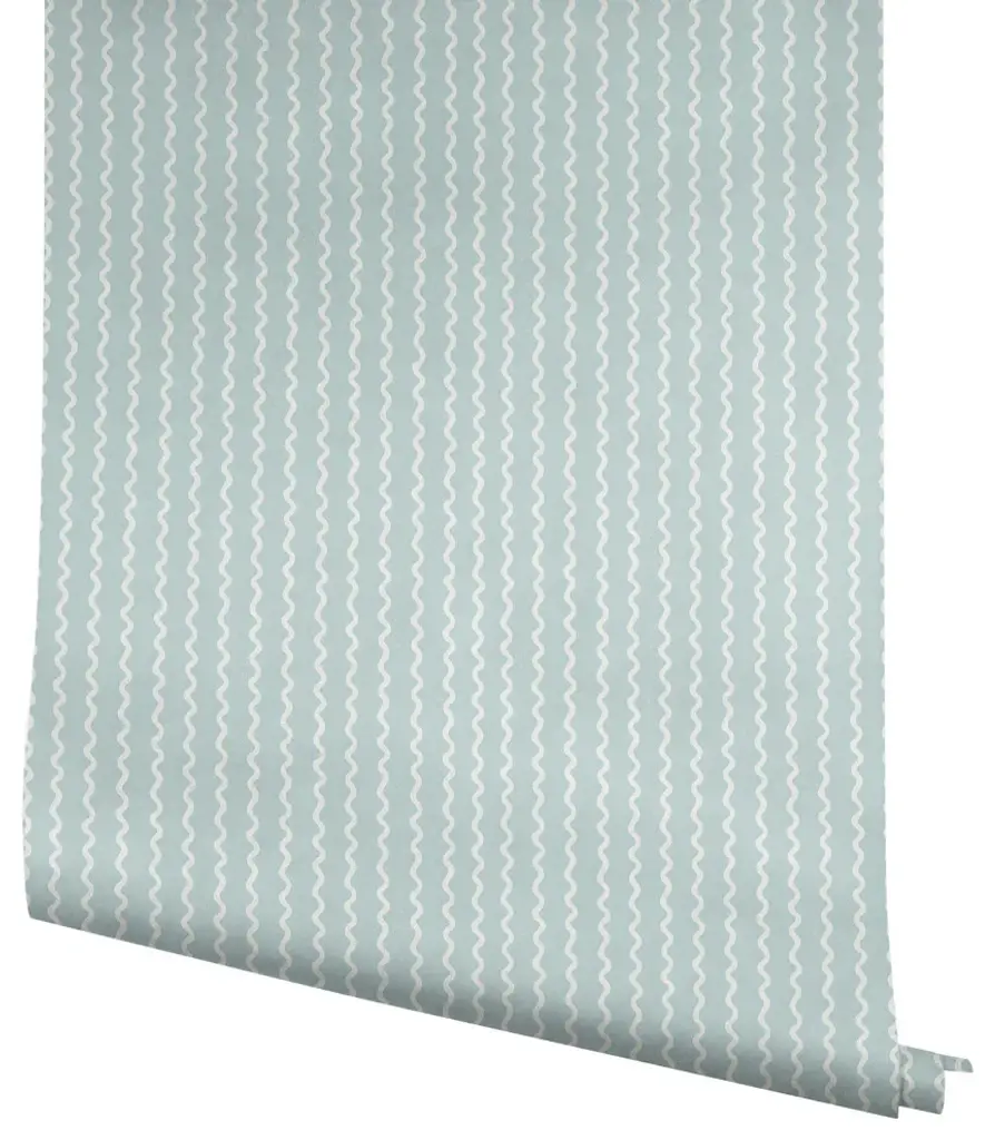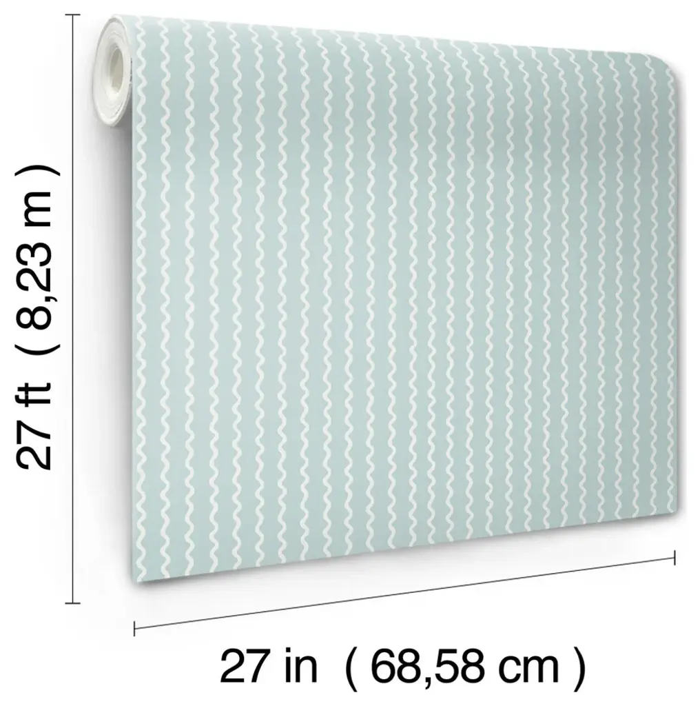 This charming, modern stripe takes its inspiration from trailing ribbons, the white curls softly offset against a light blue backdrop in pattern Rickrack. This Rickrack Wallpaper measures approximately 27 inches wide by 27 feet long, measuring approximately 60.8 square feet per roll. The world of Rifle Paper Co. is in full bloom with their third wallpaper collection. With statement floral prints, detailed illustrated designs, and metallic accents, this collection is designed to bring beauty to every room. Unpasted non woven material; 20.5-in repeat, straight match; Washable and strippable; 27-in by 27-ft long roll; Covers about 60.8 square feet