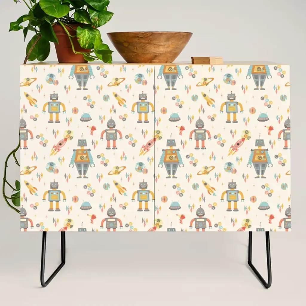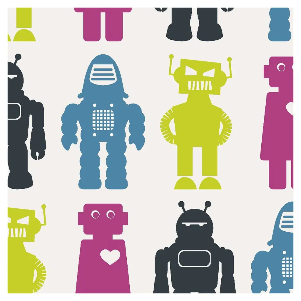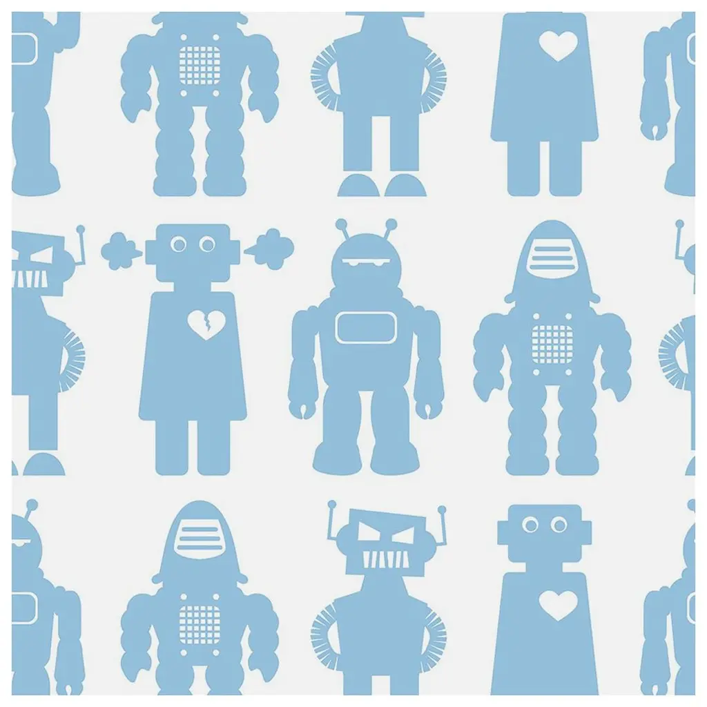 This hand-printed wall-covering with Aimée's signature Robots is he perfect wallpaper for your child's nursery, bedroom or playroom!Samples are available for $18 including US shipping, please message us to purchase.Printing: Screen-printed by hand (must be ordered in even increments).Material: FSC-certified paper. Trimming: This product may come pre-trimmed or untrimmed. Packaging: May be shipped as double rolls, or as a combination of double and single rolls. Single roll: 27 inches × 5 yards (68.8 cm × 4.5 meters) Sheet: 27 × 36 inches (68.8 × 91.4 cm)Sample:~ 8 × 10 inches (20.3 × 25.4 cm)Design Repeat: 32 inches (81.3 cm)Design Match: Straight Size note: 1 robot measures 4.75 inches (12 cm) tall.Made in the USA. Ships worldwide.Commercial grade options available; please contact us for more information.
