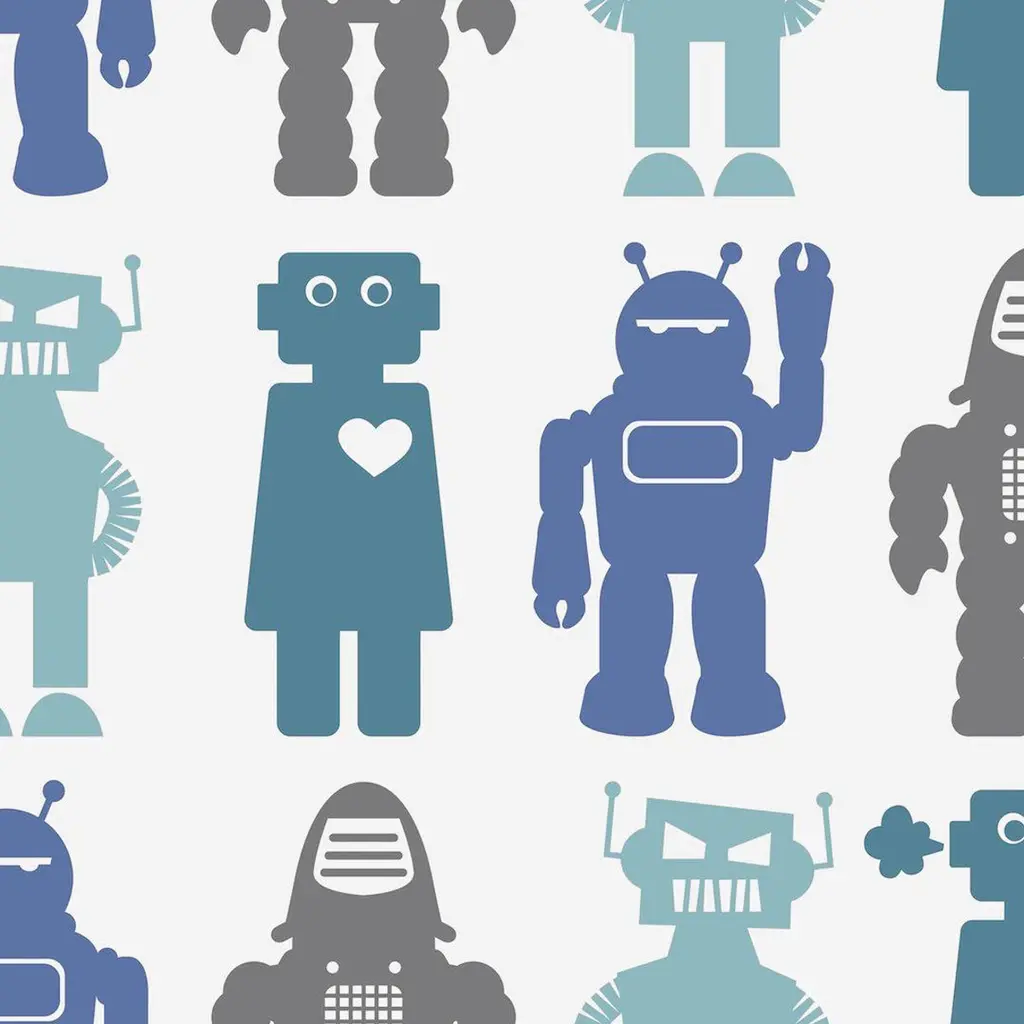 Robots Designer Wallpaper In Red 'Coral, Pink, Red And Brown'
