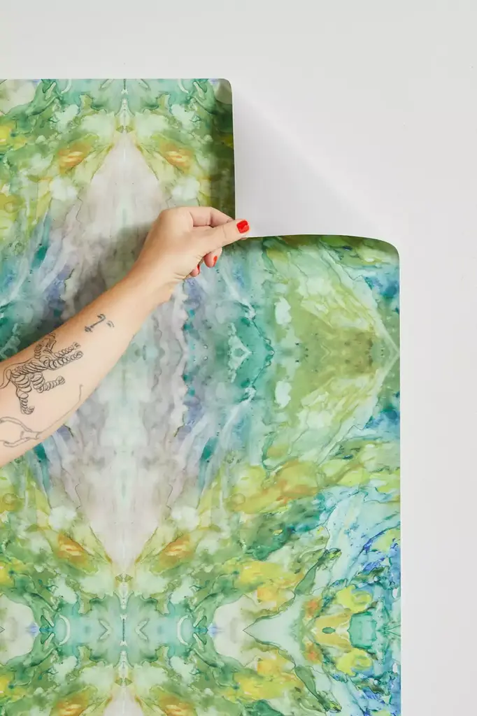Easily removable stick-on wallpaper in cool hues with painterly strokes allover by Rosie Brown. Cut in panels you can use to accent one wall or tile all over your room. Comes with one strip of wallpaper in an allover repeating pattern - choose from three different sizes to best suit your space.