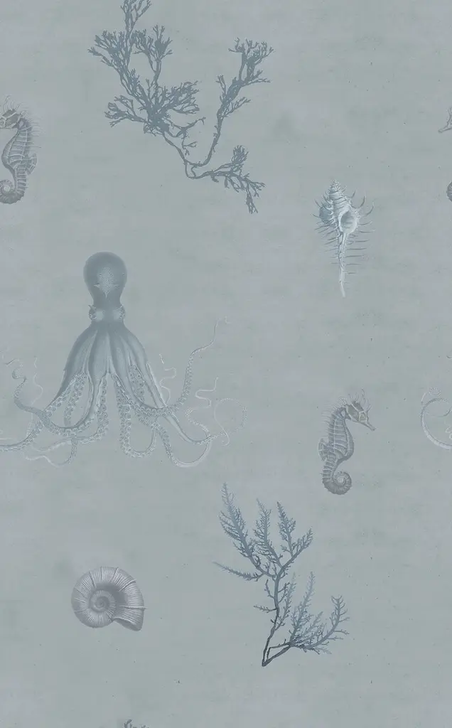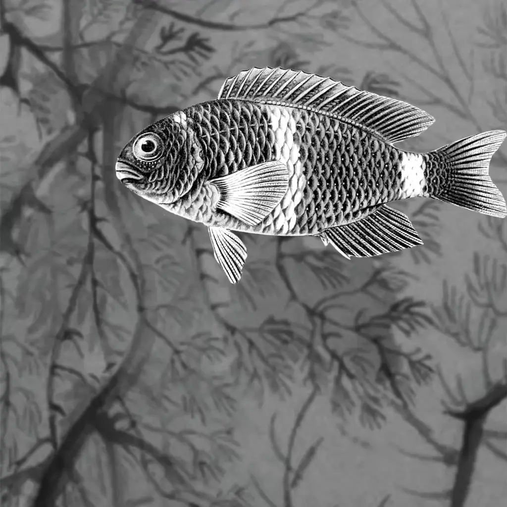 Pricing is per square meter. Wallpaper with a dreamlike atmosphere, imagined by Vito Nesta as a fantastic seabed populated by fishes. Available in three chromatic variations. Please contact the concierge service for further information.