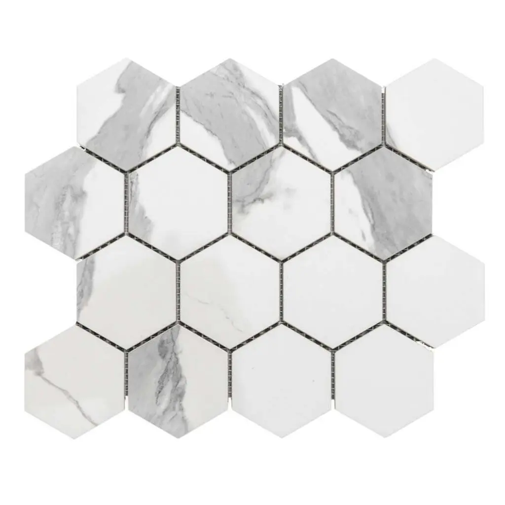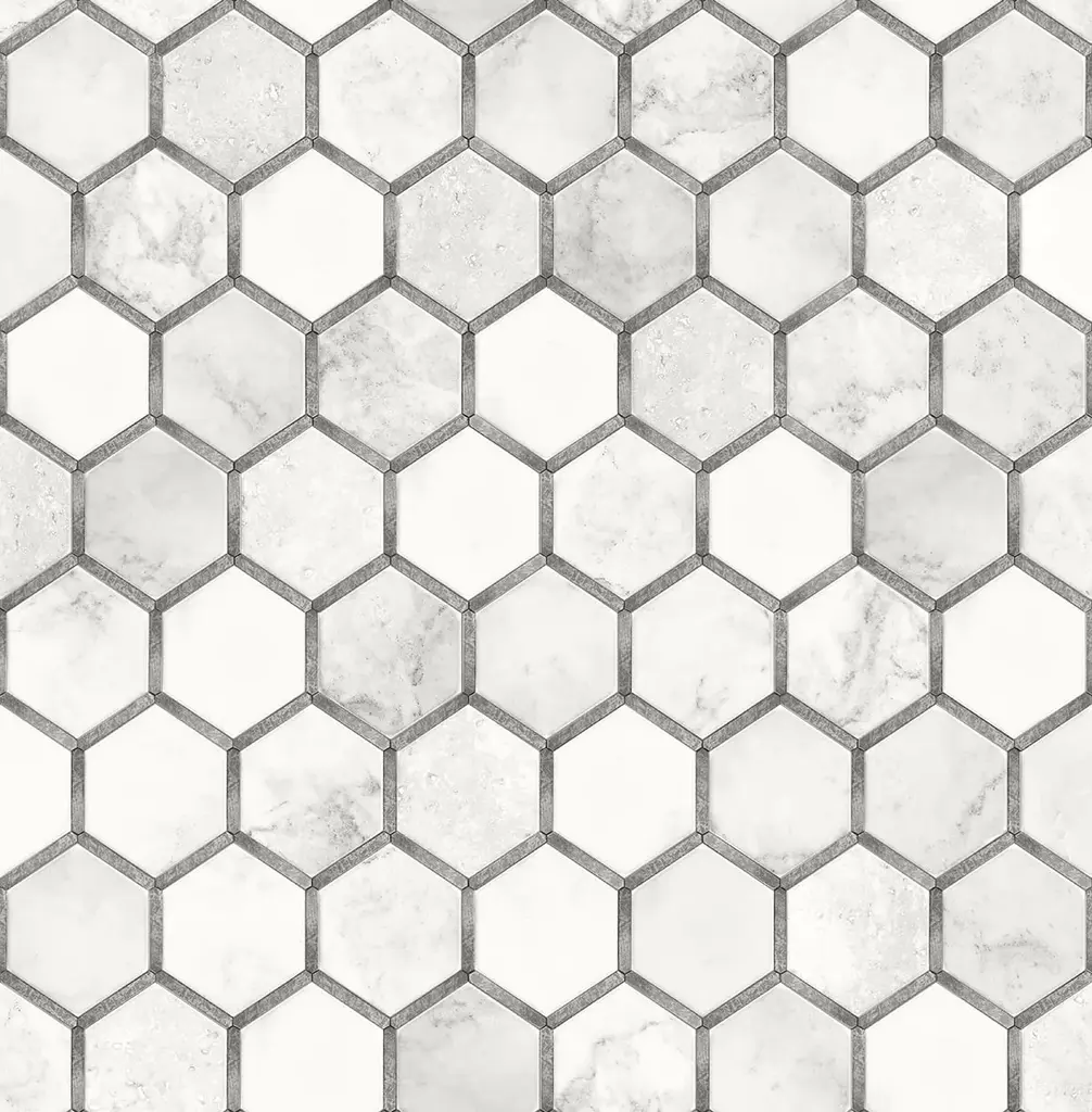 Sample Inlay Hexagon Peel-and-stick Wallpaper In Carrara And Silver