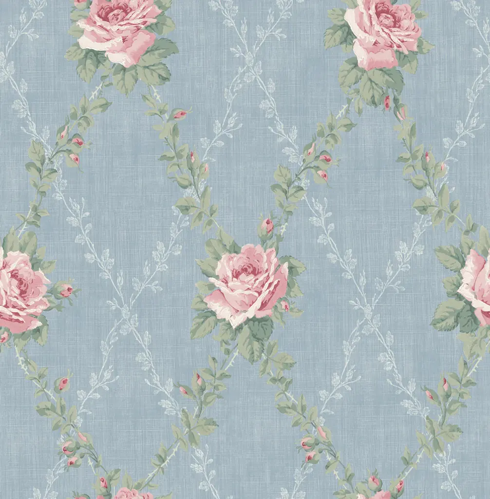Sample Rose Lattice Wallpaper In Denim From The Spring Garden Collection