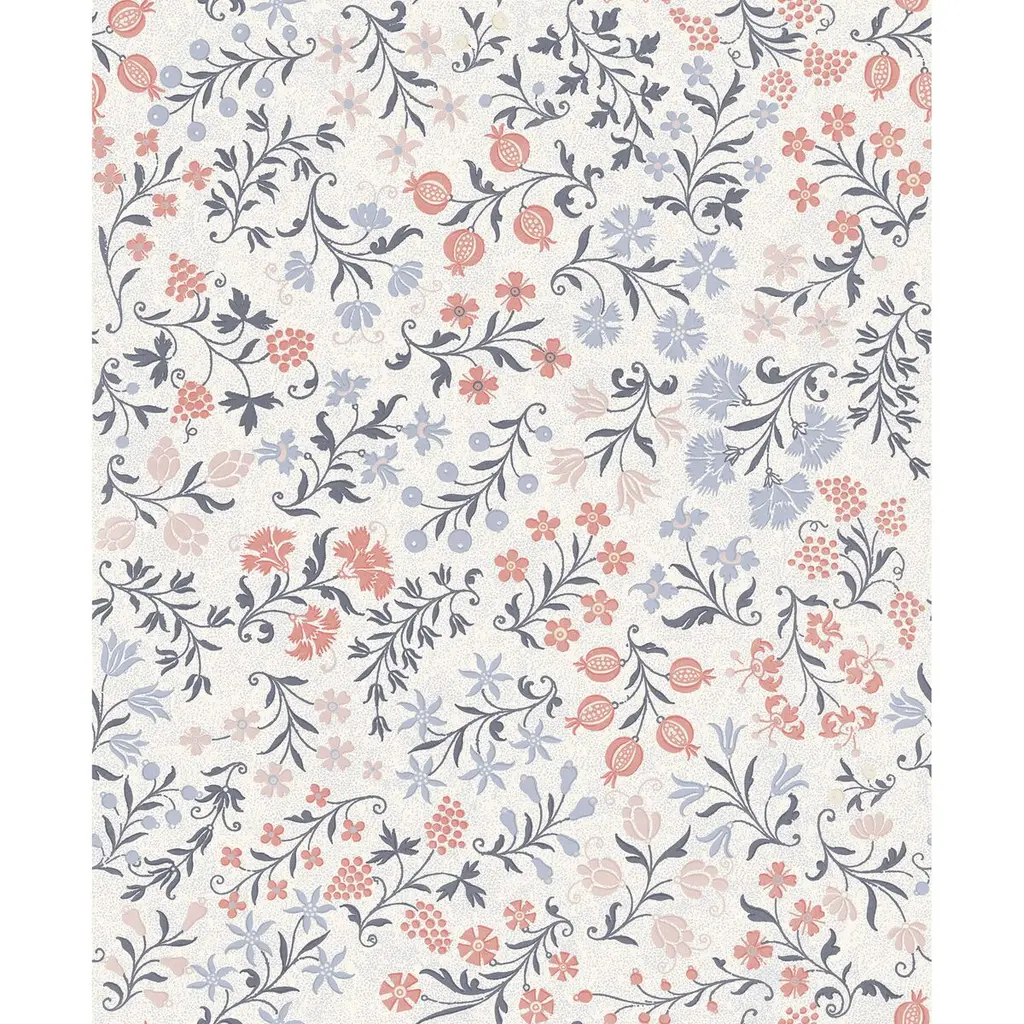 Sample Seaside Jacobean Wallpaper In White/pink/blue From The Mediterranean Collection
