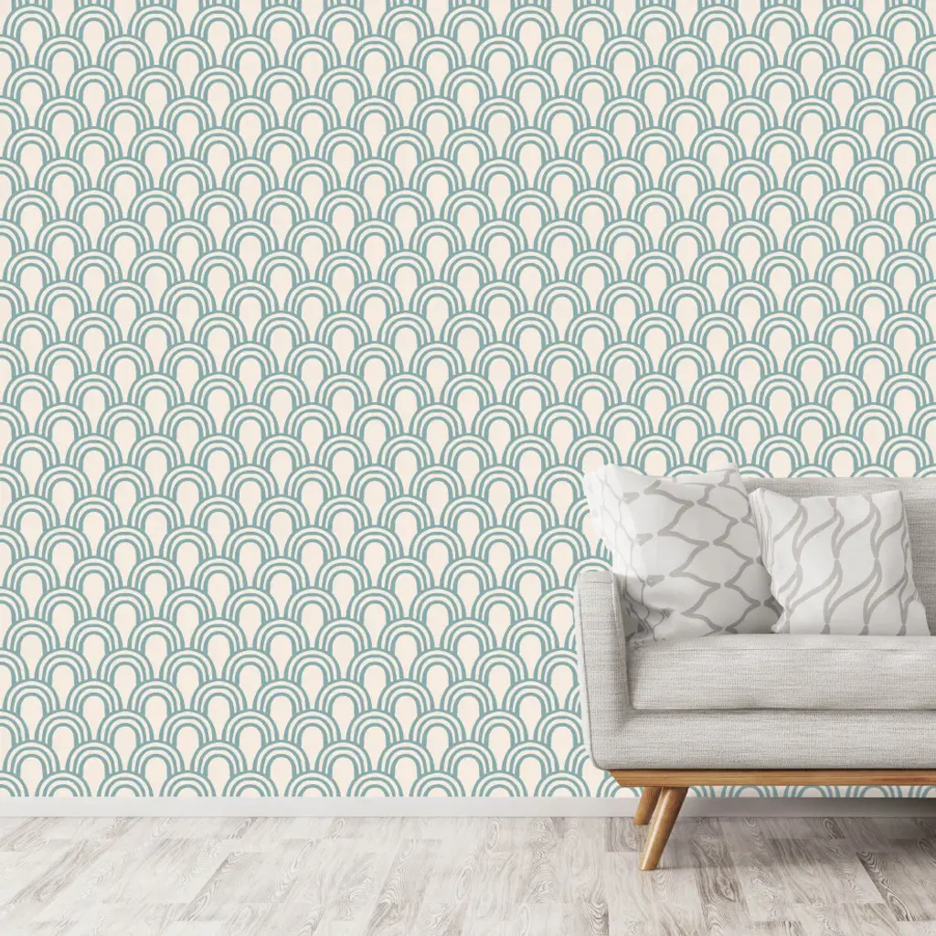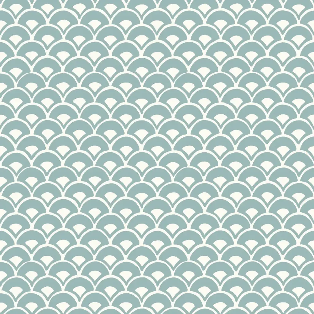 Sample Stacked Scallops Wallpaper In Soft Blue From The Magnolia Home Vol. 3 Collection