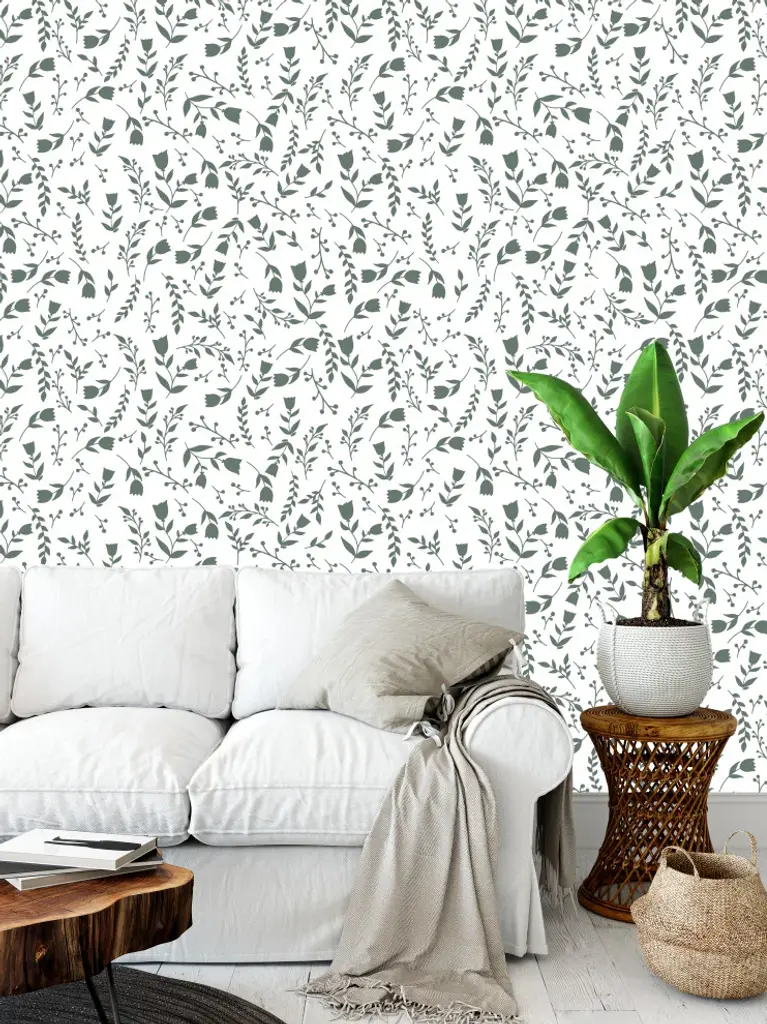 Sample Trailing Leaf Silver Wallpaper From The Into The Wild Collection