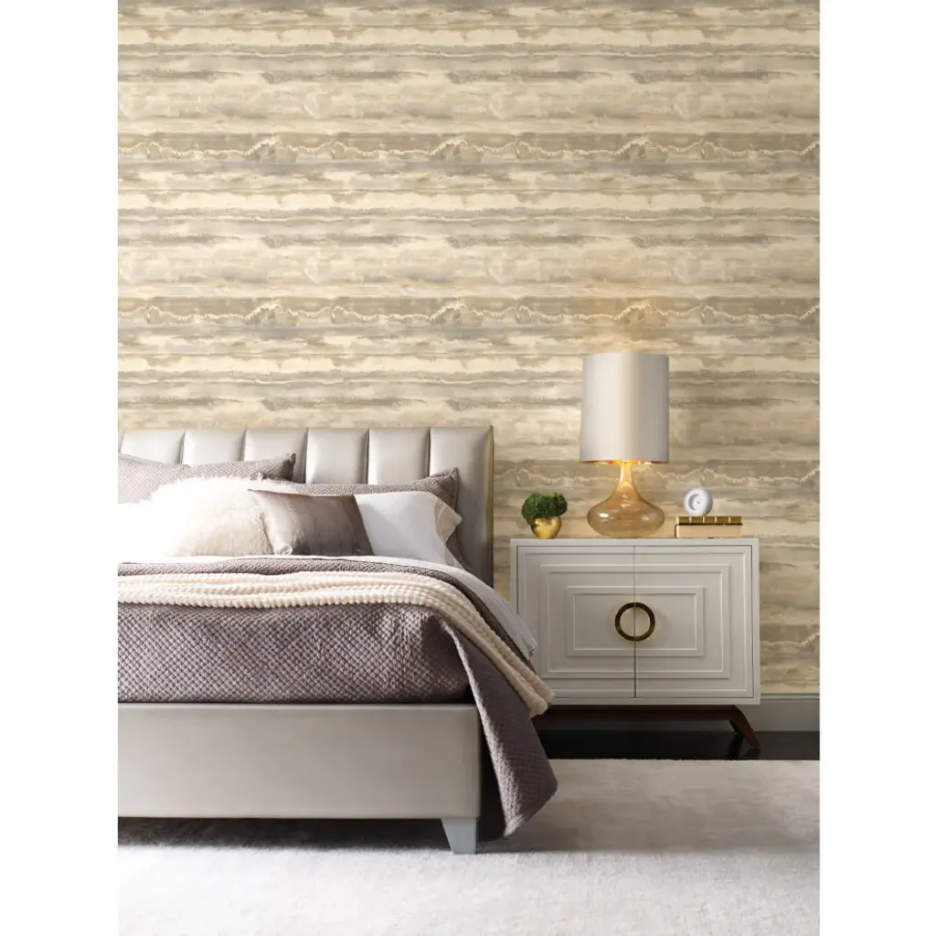 You can almost hear the rhythmic ocean waves as you contemplate the endless motion and dreamy palette of High Tide Wallpaper. This High Tide Wallpaper measures approximately 27 inches wide by 27 feet long, covering About 60.8 square feet per roll. Durable and easy to remove from primed walls, this friendly to hang unpasted nonwoven wallpaper is created with a special blend of synthetic fibers, making it both easy to hang and tear resistant. Unpasted non woven material; 24-in repeat, straight match; Washable and strippable; 27-in by 27-ft long roll; Covers about 60.8 square feet
