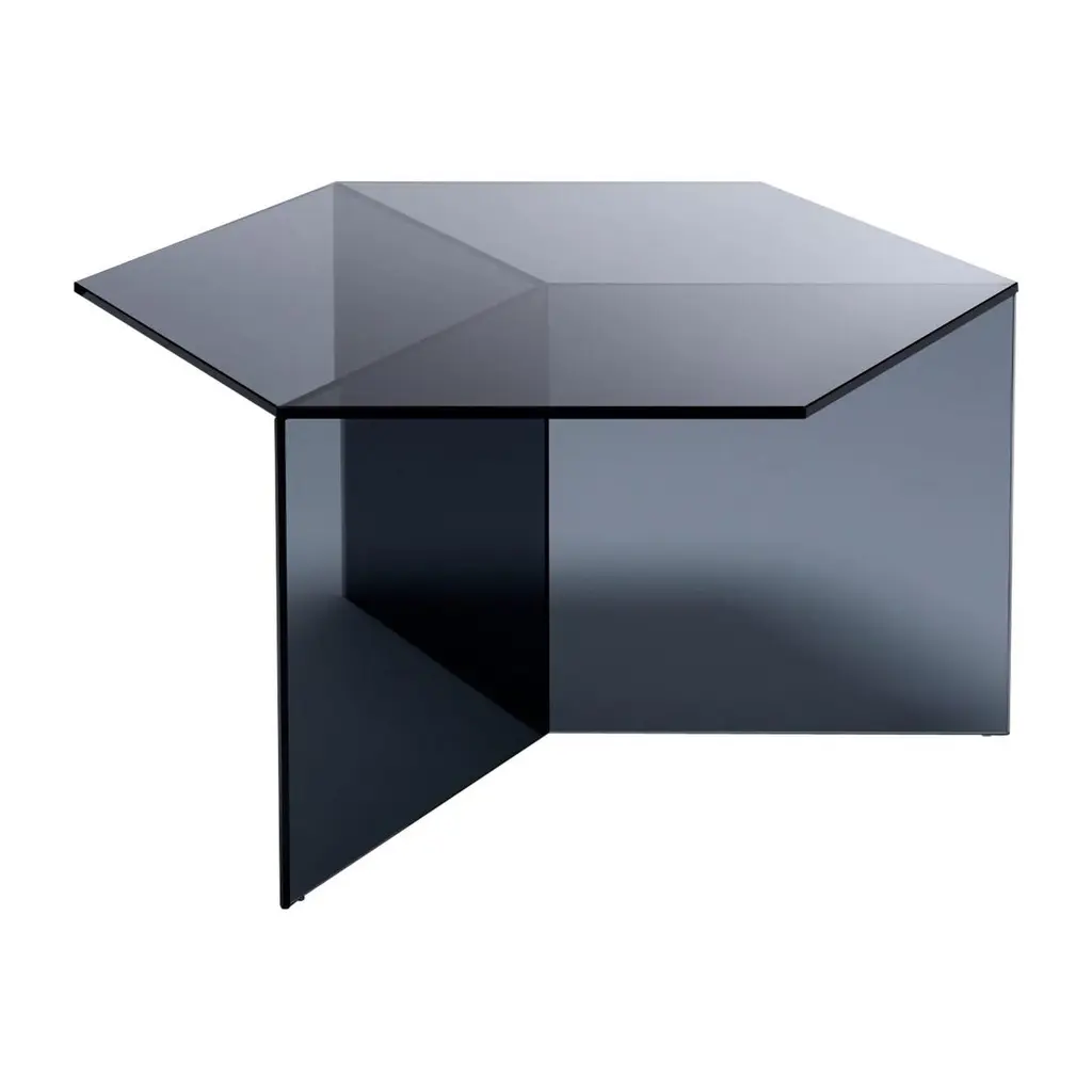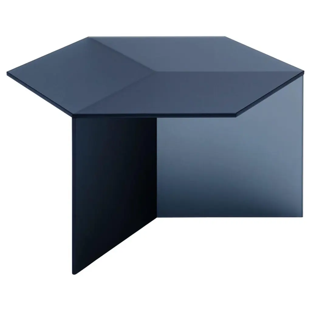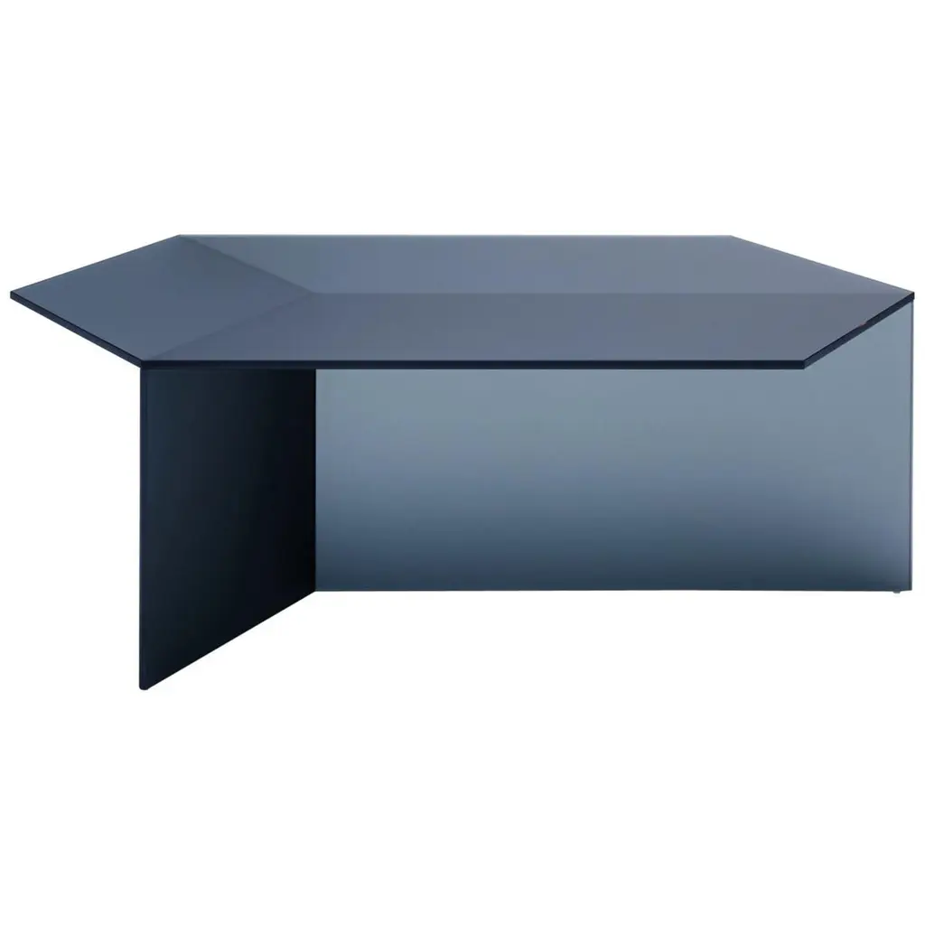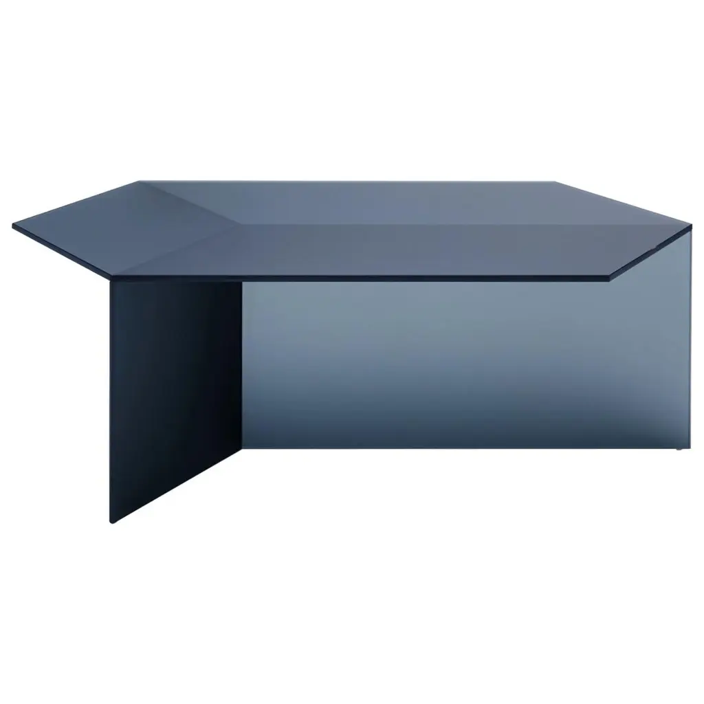 Satin glass "Isom Oblong" coffee table - Sebastian SchererDimensions: 35 H x 105 W x 61 D cmMaterials: Solid colored glassDifferent colors and sizes are availableThe Isom tables play with a fascinating optical illusion. The hexagonal glass panel is UV glued with three vertical foot elements whose edges, viewed from a certain angle, convey the perfect isometric drawing of a cube. A special detail are the CNC-ground double mitres and the seamless bonding of the foot elements. The different sizes and variants can be combined very well. The glass tables are available in four colors, each in clear glass and satined.The NEO/CRAFT label was founded by the Berlin-based designer Sebastian Scherer after he won the Lexus Design Award 2014 for his Iris lamp (2013). The debut collection, which consisted of ten products, was first presented at the imm cologne in January 2015 in what Wallpaper Magazine described as “one of the most impressive debuts in 2015.” Exhibitions at trade fairs in Milan and London followed this same year. Since then, Sebastian Scherer has worked as a designer and creative director in equal measure. The collection consists of his designs, but these can also undergo further development in the future through the input of other designers. The central element in his developmental process is the continual search for new creative possibilities with classical materials such as aluminum, steel, glass and wood.