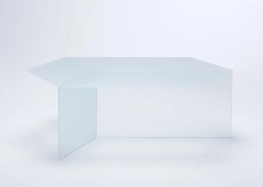 Satin glass "Isom Oblong" coffee table, Sebastian SchererDimensions: 35 H x 105 W x 61 D cmMaterials: Solid colored glassDifferent colors and sizes are availableThe Isom tables play with a fascinating optical illusion. The hexagonal glass panel is UV glued with three vertical foot elements whose edges, viewed from a certain angle, convey the perfect isometric drawing of a cube. A special detail are the CNC-ground double mitres and the seamless bonding of the foot elements. The different sizes and variants can be combined very well. The glass tables are available in four colors, each in clear glass and satined.The NEO/Craft label was founded by the Berlin-based designer Sebastian Scherer after he won the Lexus Design Award 2014 for his Iris lamp, (2013). The debut collection, which consisted of ten products, was first presented at the imm cologne in January 2015 in what Wallpaper Magazine described as “one of the most impressive debuts in 2015.” Exhibitions at trade fairs in Milan and London followed this same year. Since then, Sebastian Scherer has worked as a designer and creative director in equal measure. The collection consists of his designs, but these can also undergo further development in the future through the input of other designers. The central element in his developmental process is the continual search for new creative possibilities with classical materials such as aluminum, steel, glass and wood.