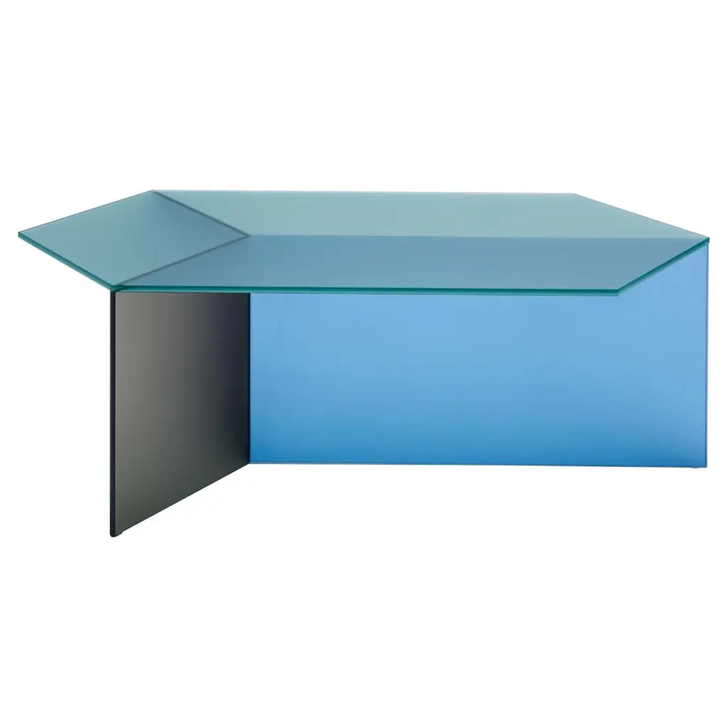 Satin glass "Isom Oblong" coffee table, Sebastian SchererDimensions: 40 H x 120 W x 69 D cmMaterials: Solid colored glassDifferent colors and sizes are availableThe Isom tables play with a fascinating optical illusion. The hexagonal glass panel is UV glued with three vertical foot elements whose edges, viewed from a certain angle, convey the perfect isometric drawing of a cube. A special detail are the CNC-ground double mitres and the seamless bonding of the foot elements. The different sizes and variants can be combined very well. The glass tables are available in four colors, each in clear glass and satined.The NEO/craft label was founded by the Berlin-based designer Sebastian Scherer after he won the Lexus Design Award 2014 for his Iris lamp (2013). The debut collection, which consisted of ten products, was first presented at the imm cologne in January 2015 in what wallpaper magazine described as “one of the most impressive debuts in 2015.” Exhibitions at trade fairs in Milan and London followed this same year. Since then, Sebastian Scherer has worked as a designer and creative director in equal measure. The collection consists of his designs, but these can also undergo further development in the future through the input of other designers. The central element in his developmental process is the continual search for new creative possibilities with classical materials such as aluminum, steel, glass and wood.